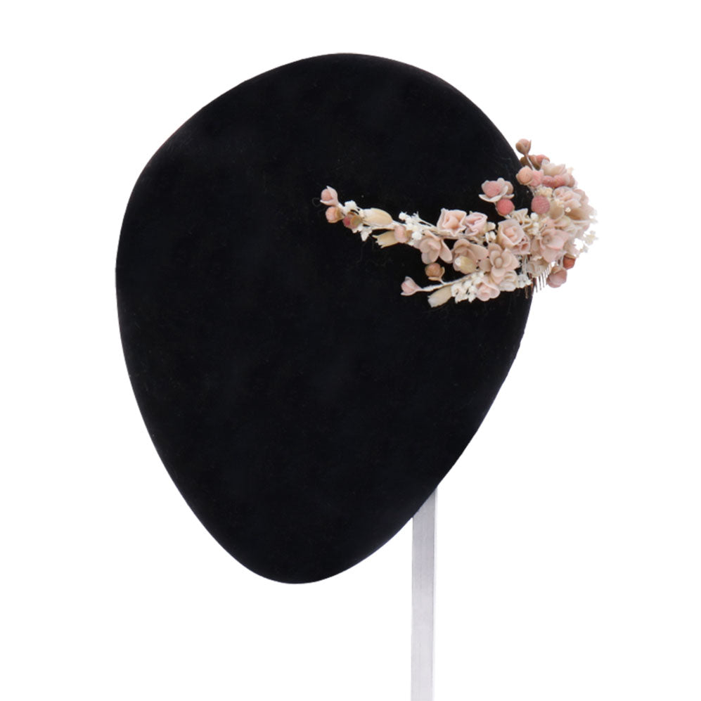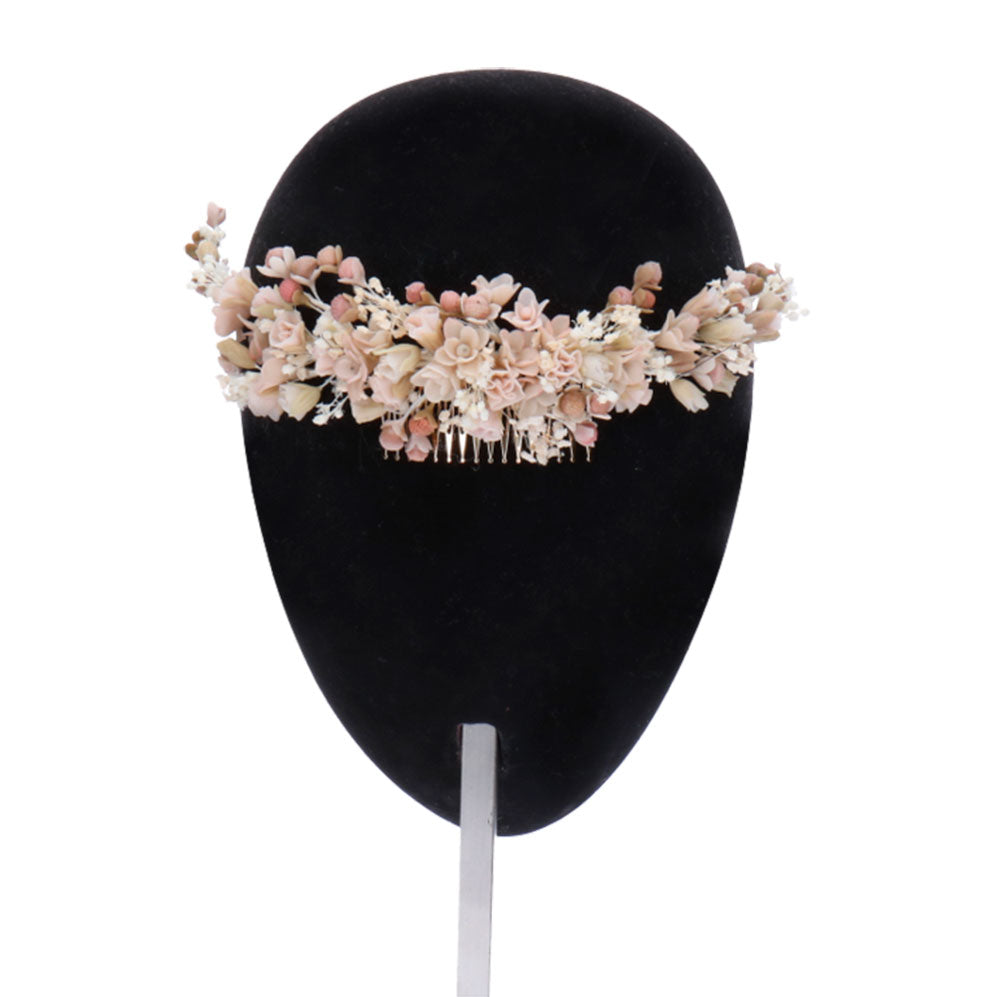 Comb with flowers and buds of cold porcelain in white shades , Pink Nude and Green , Combined with preserved white seeds .