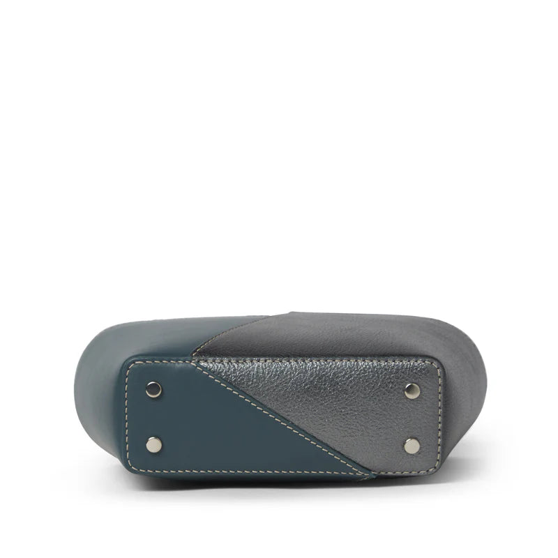 Elegancia discreta y funcionalidad se encuentran en este bolso de piel vacuna, hecho a mano en España con componentes 100% nacionales. Su diseño geométrico y líneas limpias se complementan con una combinación de dos tonos de piel, creando un contraste moderno y sofisticado. Gracias a su asa reversible, que permite cambiar de color según el estilo o la ocasión, este bolso se adapta a ti y no al revés.
