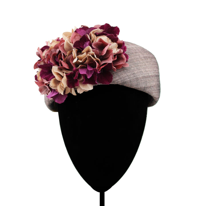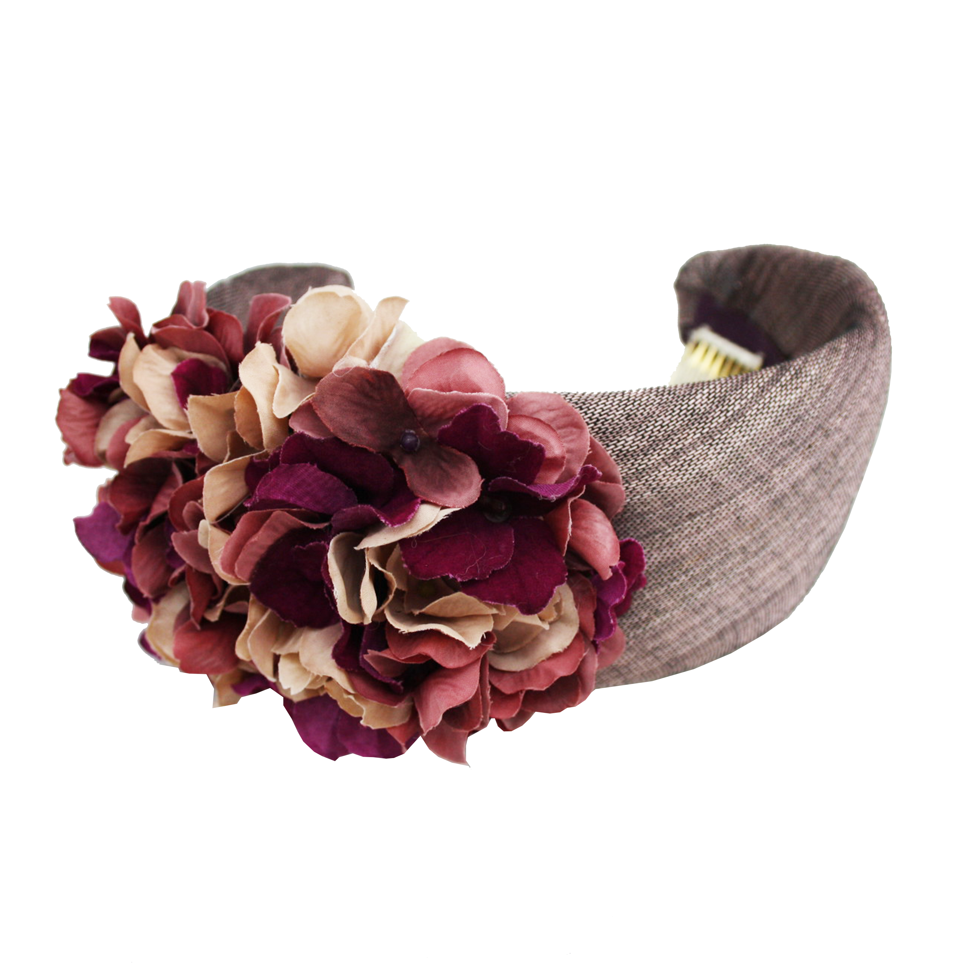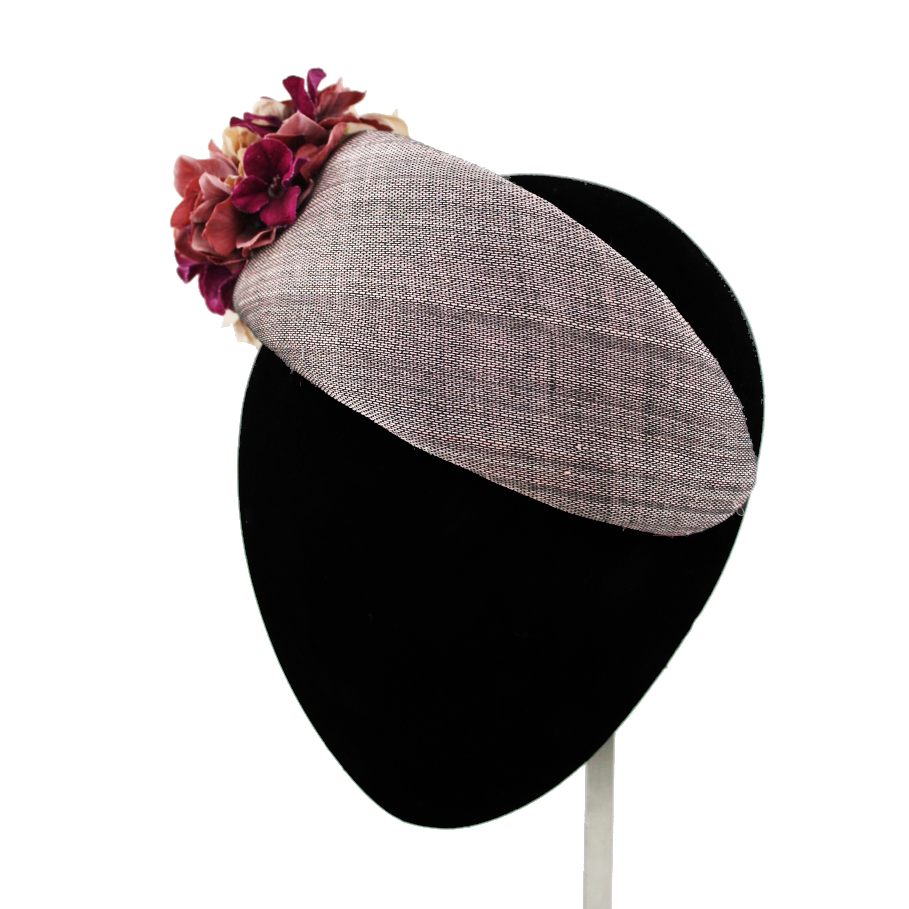 Raffia-lined Headband color Old Rose with flowers in bougainvillea tones , Pink and nude