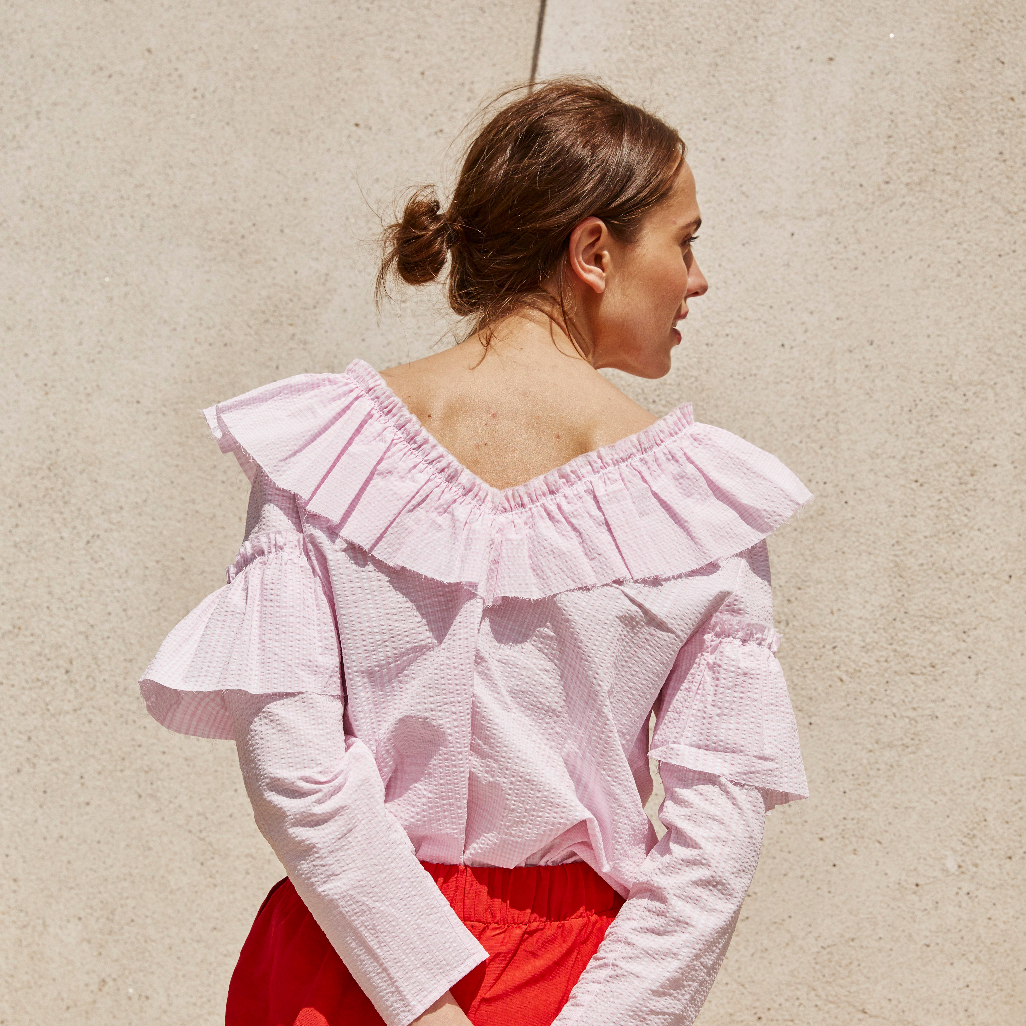 Top victoria en micro Vichy rosa y blanco. Fabricado íntegramente en España.