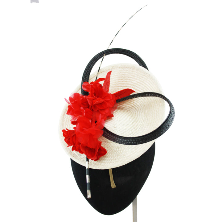 Mini Dulcinea natural With black structure and red flowers of organza and velvet + Racha b/n .