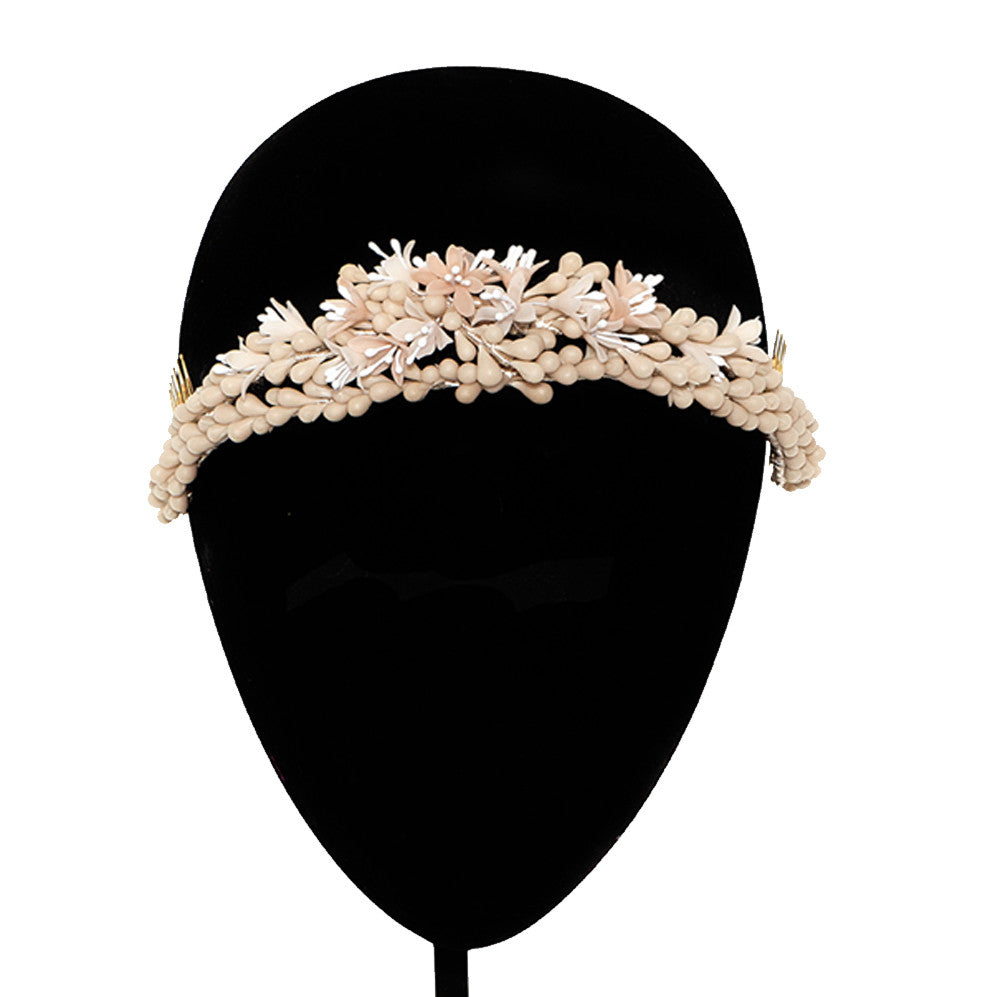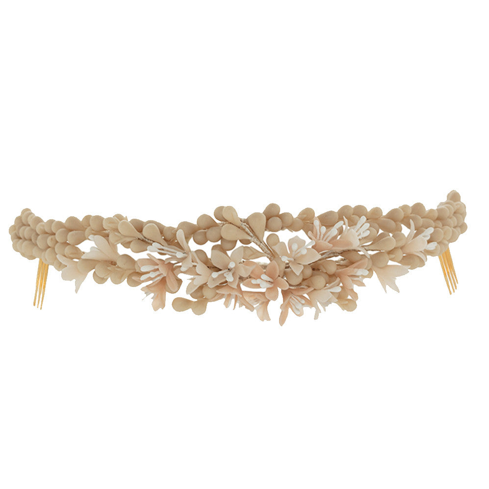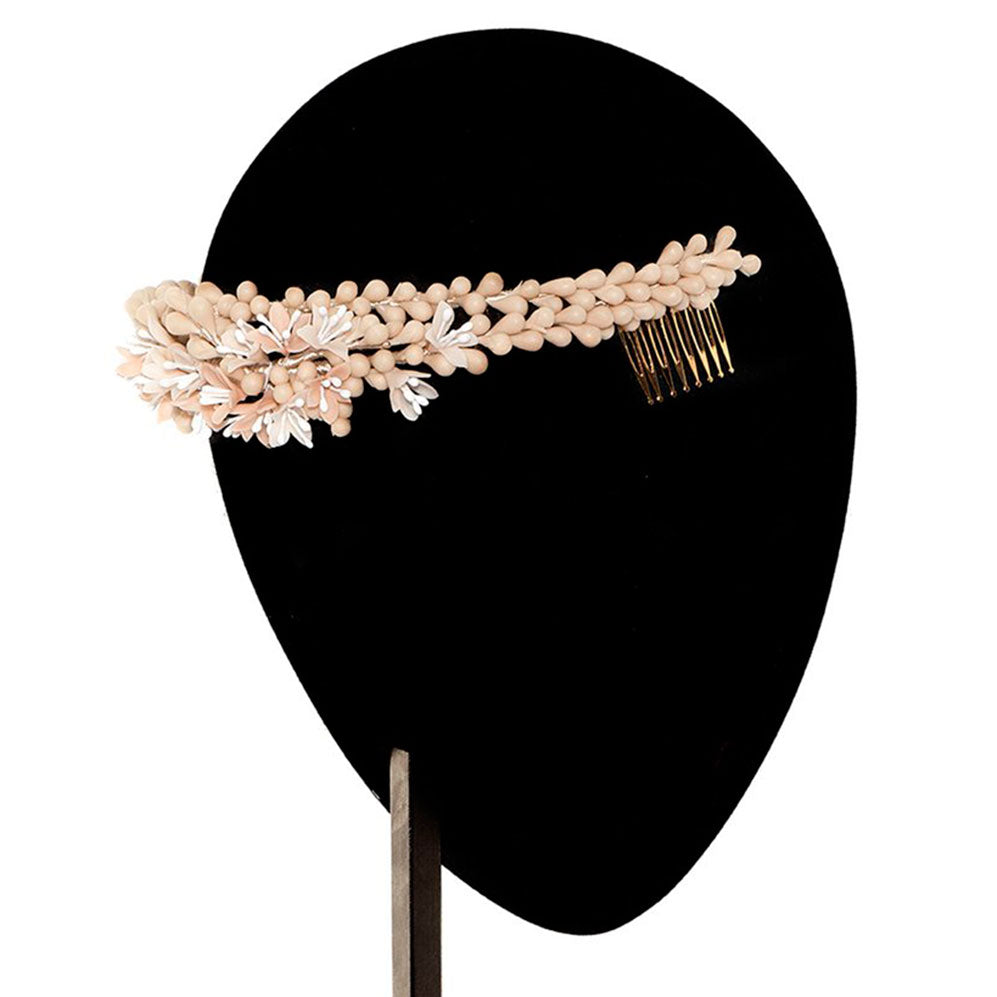Miniflores Tiara and pistils of cold porcelain in shades of pink nude .