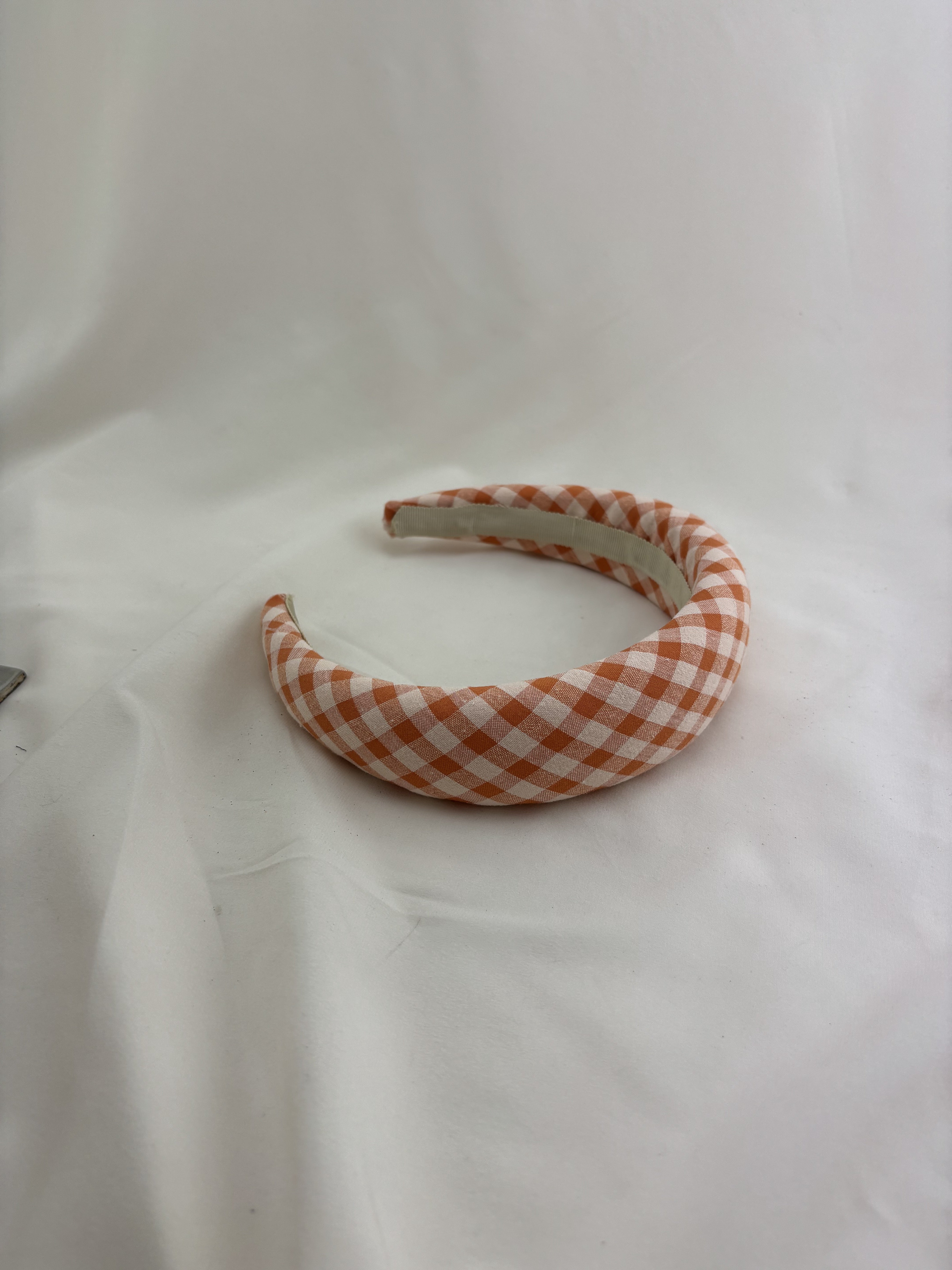 Diadema ancha forrada de tejido de algodón estampado de cuadros vichy