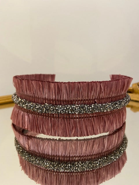 Diadema sia de rafia rosa fucsia con pedrería central