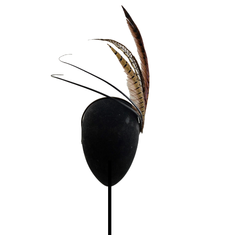 Estructura de 2 raquis curvados negros y plumas faisán en tonos naturales
