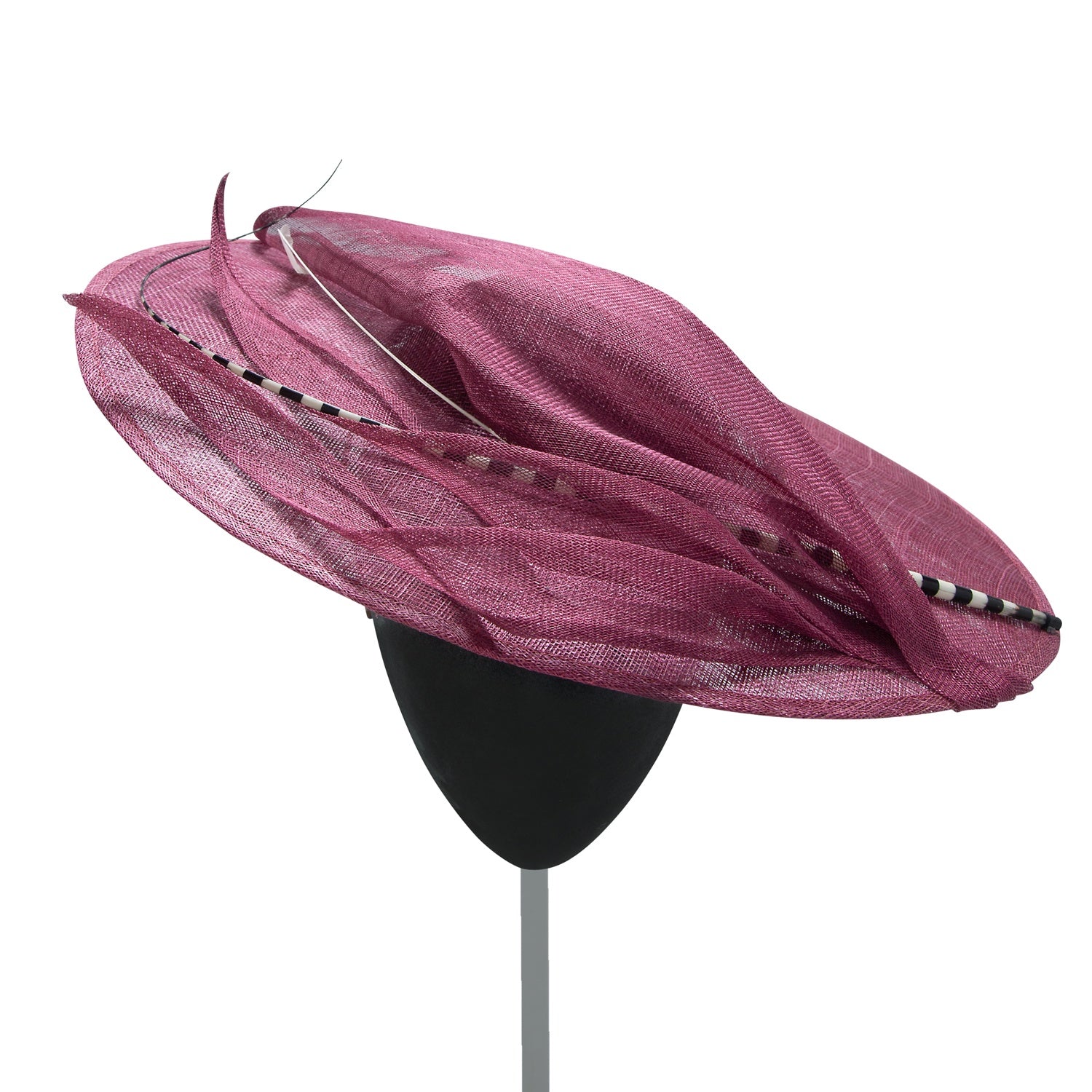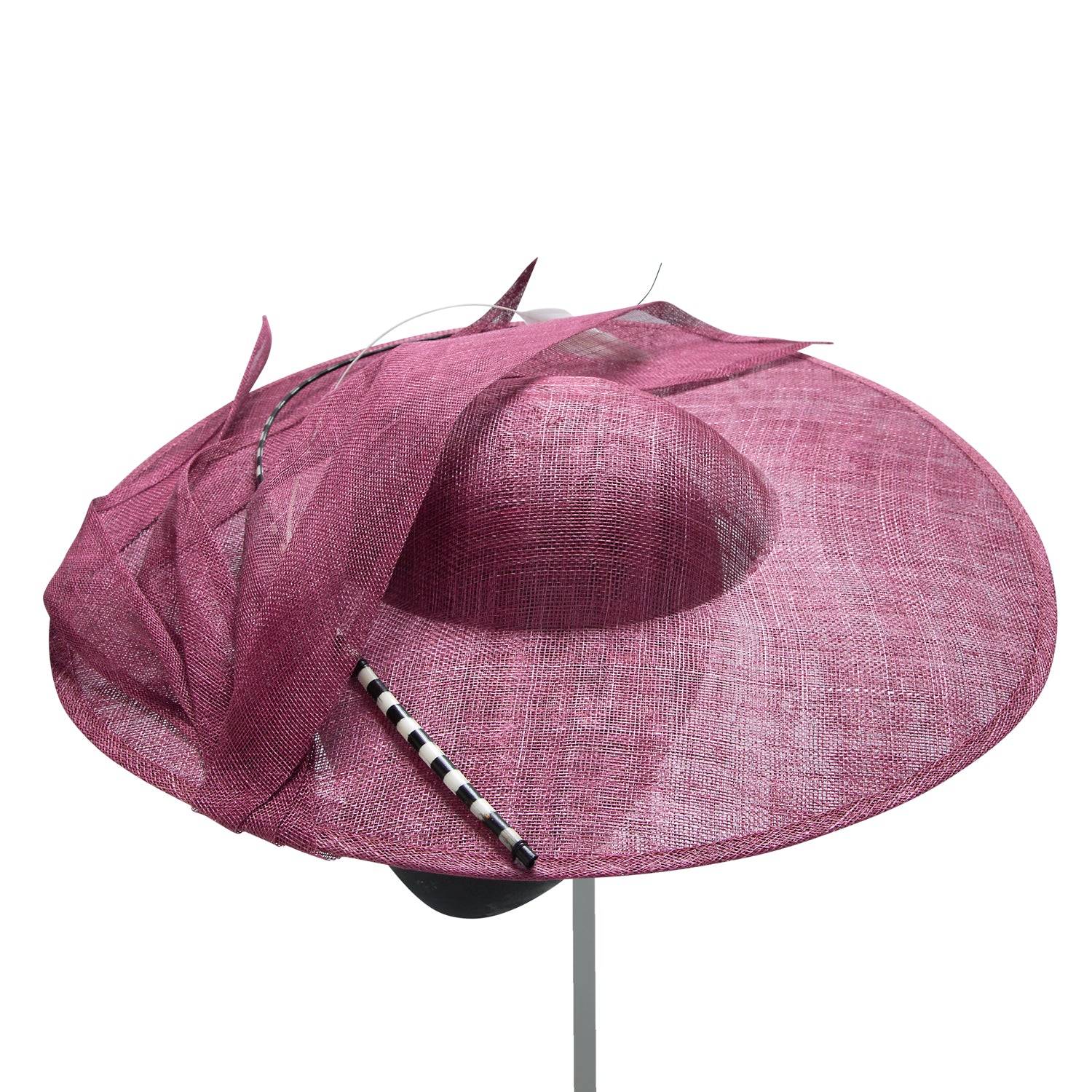 Pamela sinamay color vino con 3 hojas de sinamay, raqui b/n y antena blanca