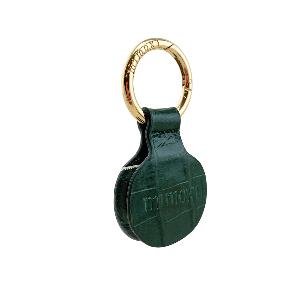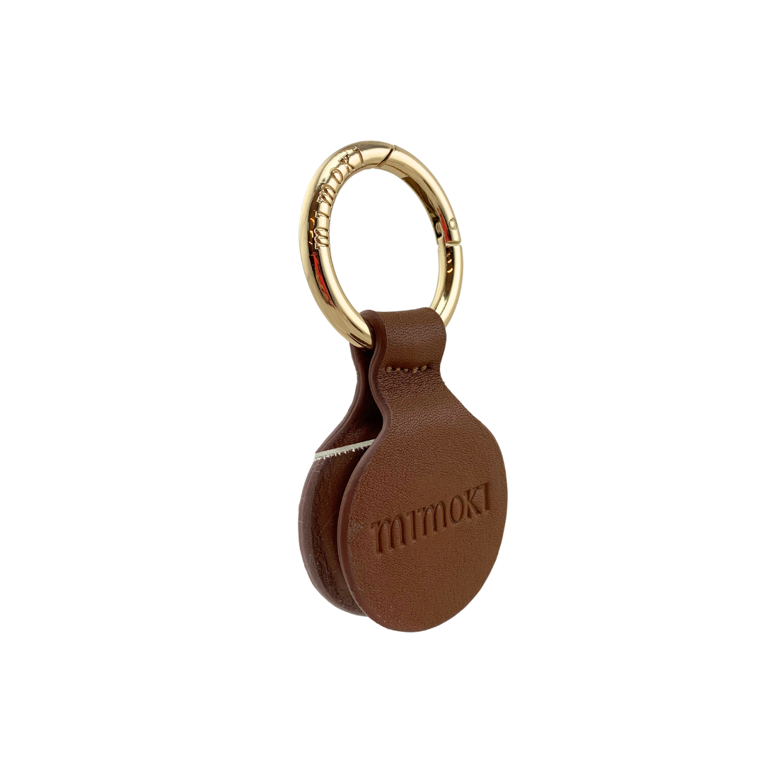 Llavero imán porta sombrero de piel, con mosquetón bañado en oro. Grabado con logo de Mimoki.