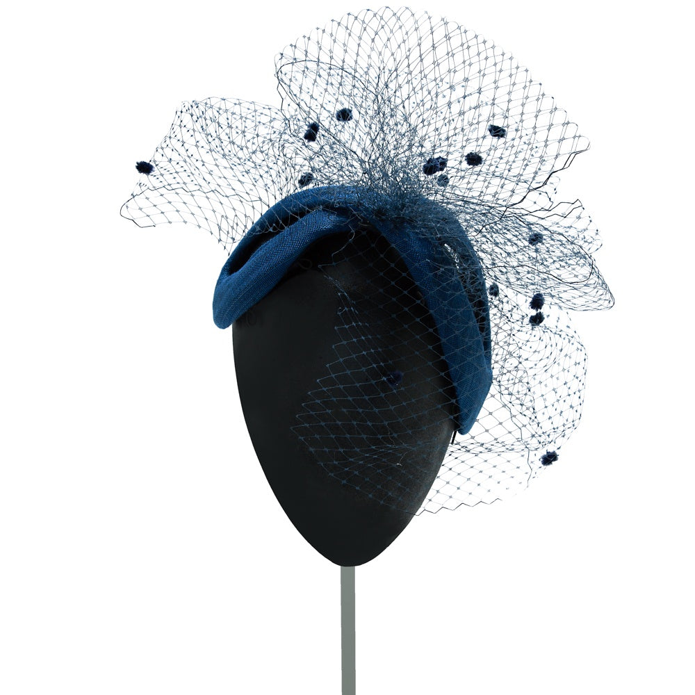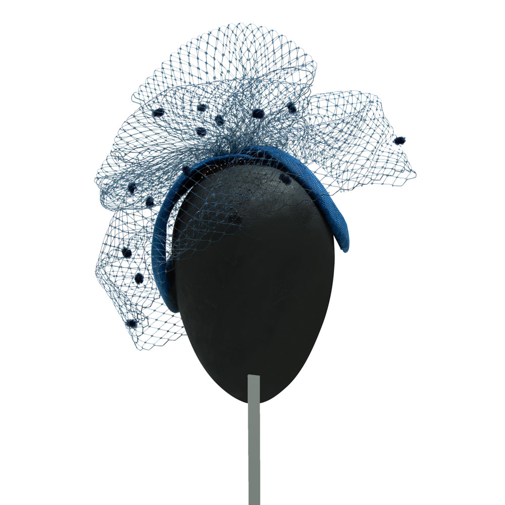 Estructura azul marino en forma de ocho con velo de plumeti al tono