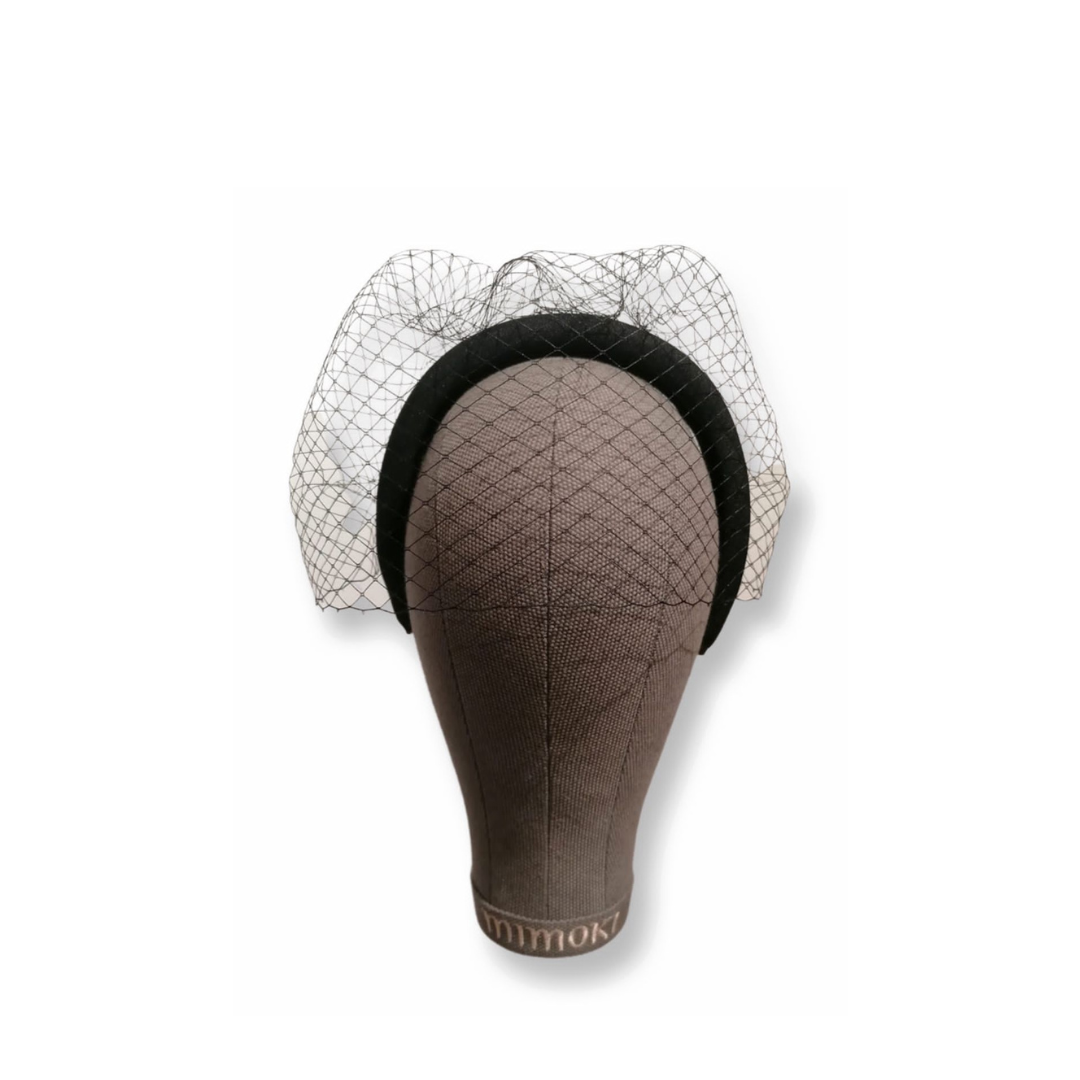Diadema ancha negra con velo fino al tono