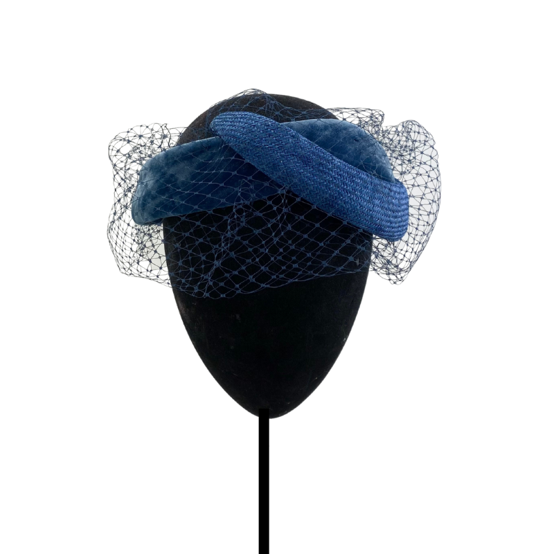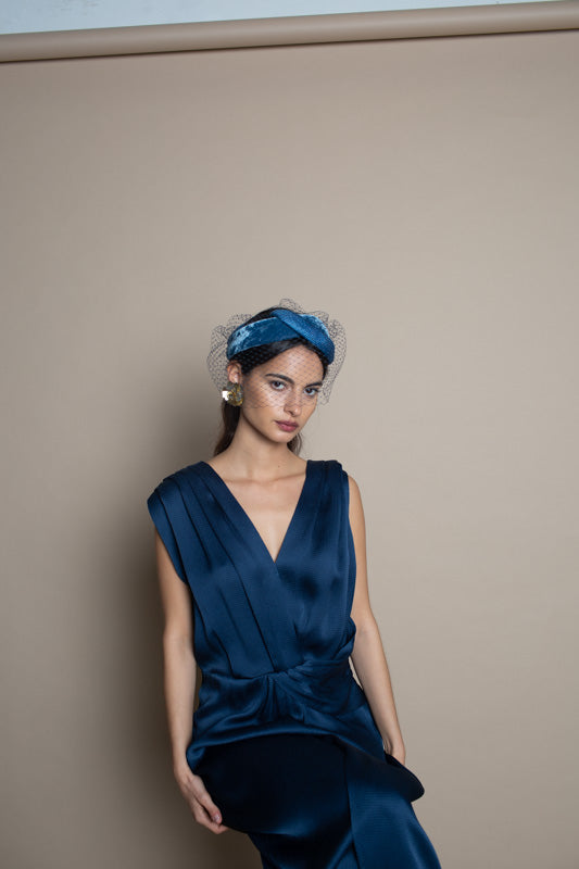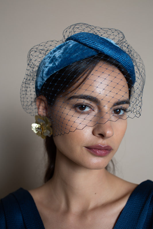 Estructura doble cerrada de parasisal y terciopelo azul con redecilla al tono