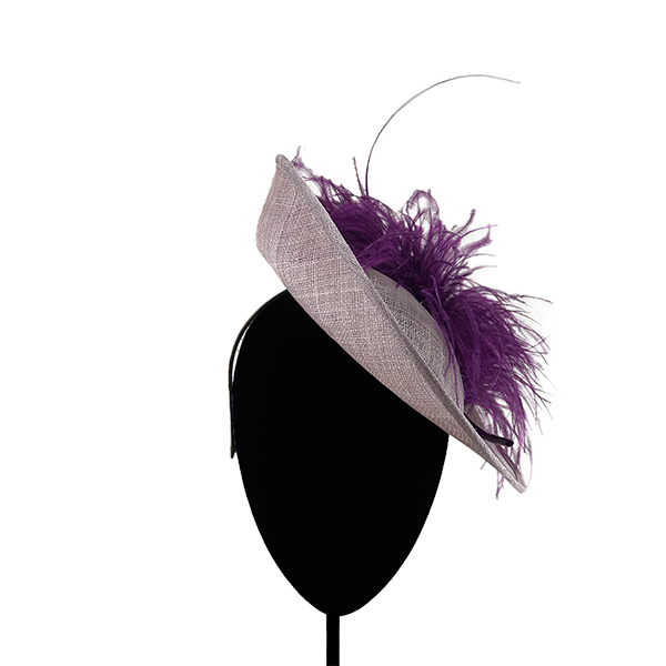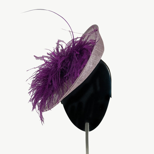 Dulcinea mediana malva con plumero de marabú morado y raquis curvados al tono