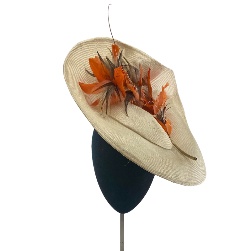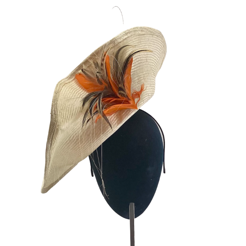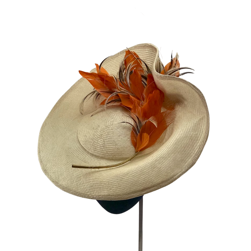 Dulcinea mediana en parasisal natural con ala levantada y plumero naranja