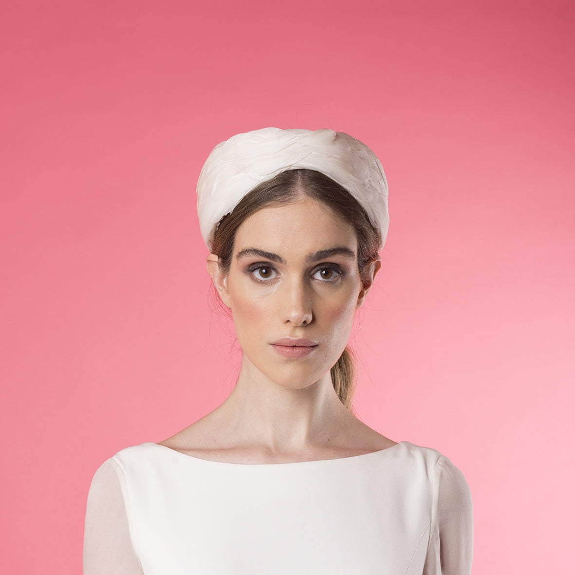 Turbante diadema de plumas blancas