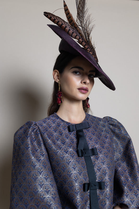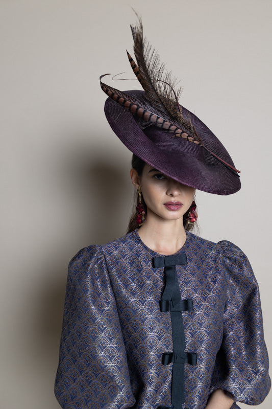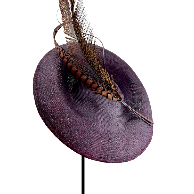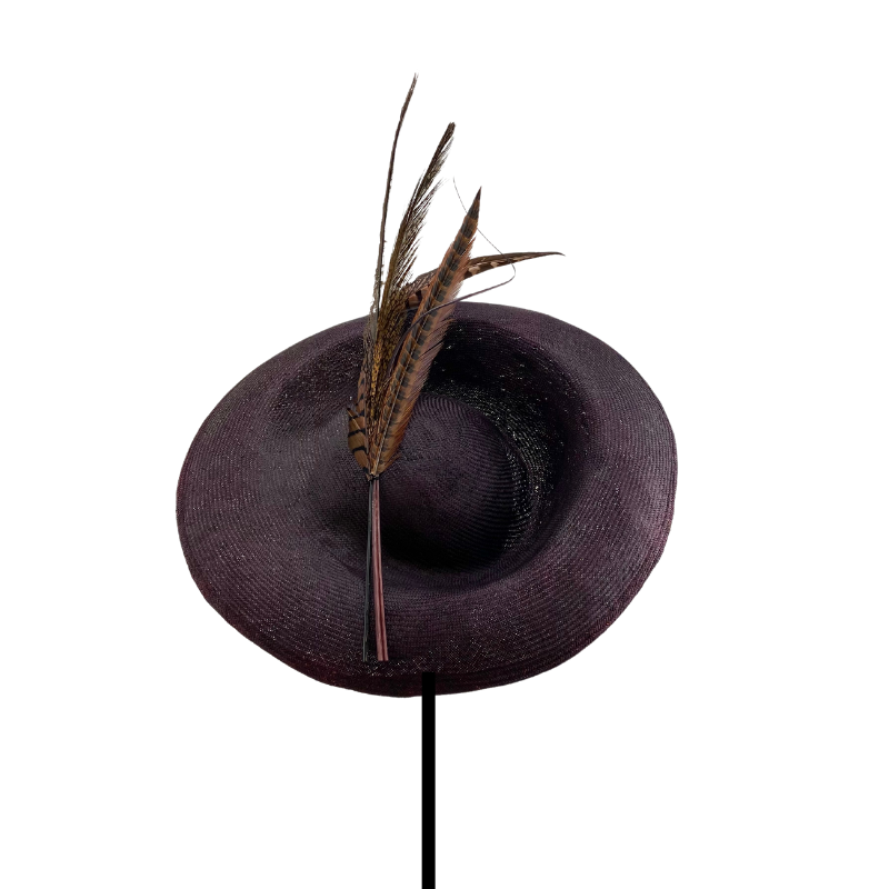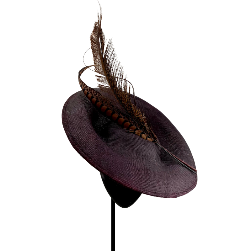 Dulcinea mediana en parasisal granate oscuro con mix de plumas y raqui curvado