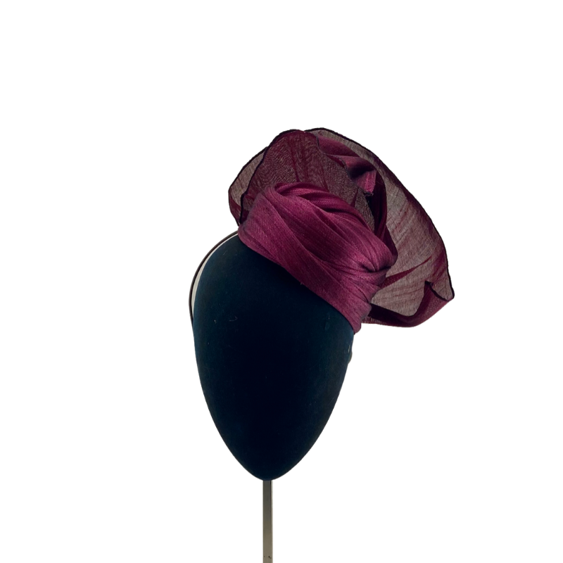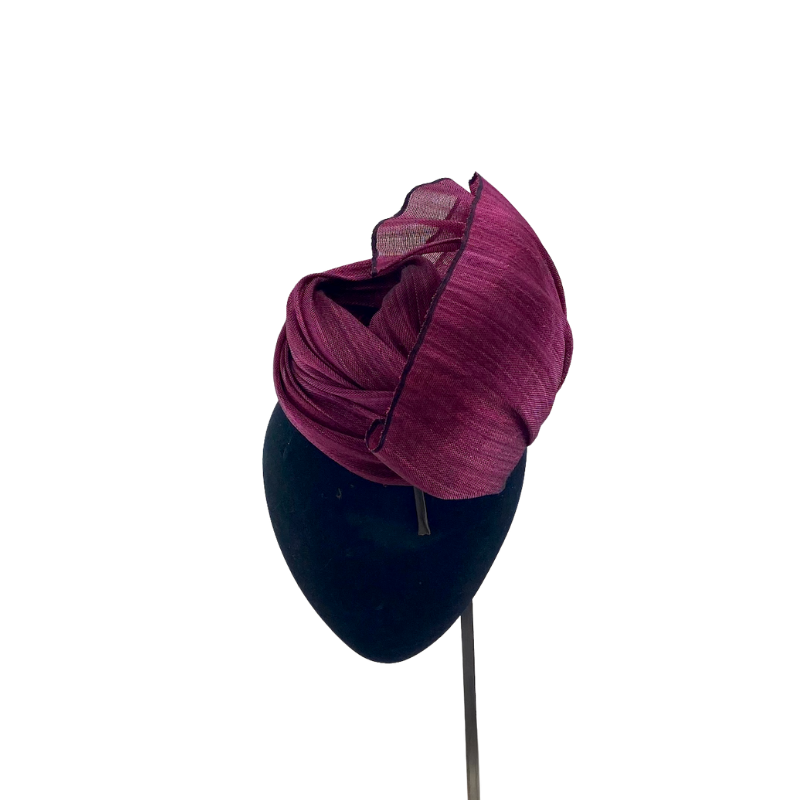 Estructura abanico de rafia y algodón fucsia en forma de casquete