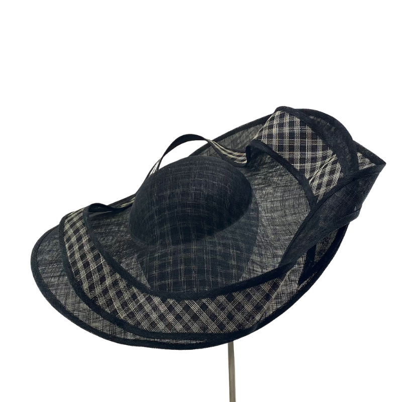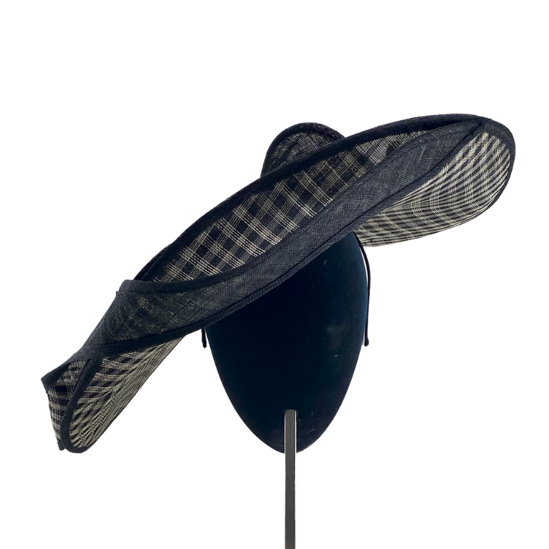 Dulcinea granda de rafia negra con onda y estampado vichy por debajo del ala
