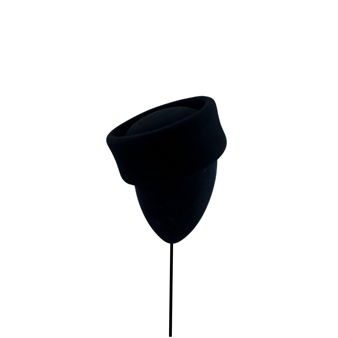 Casquete de fieltro de lana con forma cilíndrica con el centro ligeramente hundido en negro