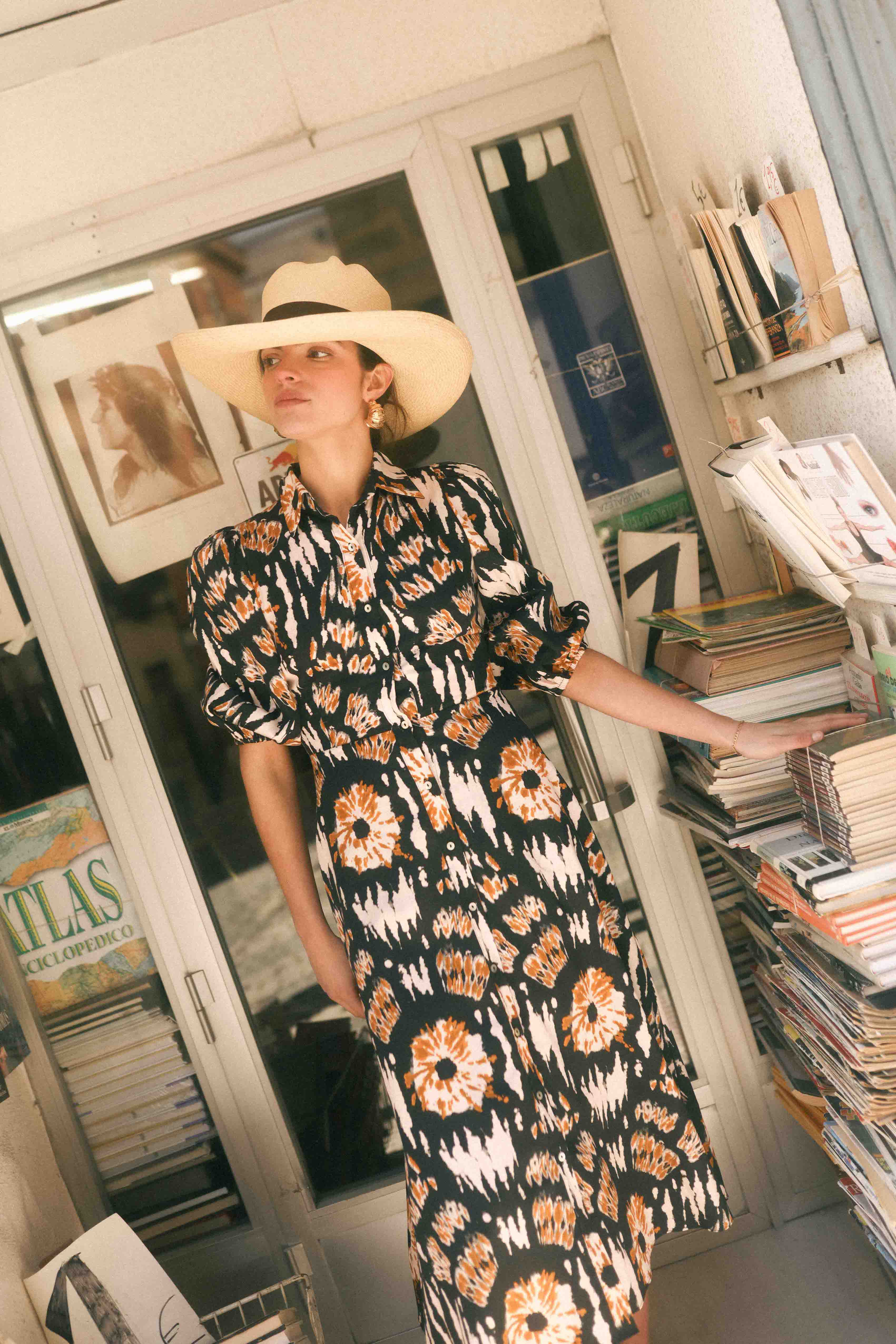 Vestido camisero con estampado.
