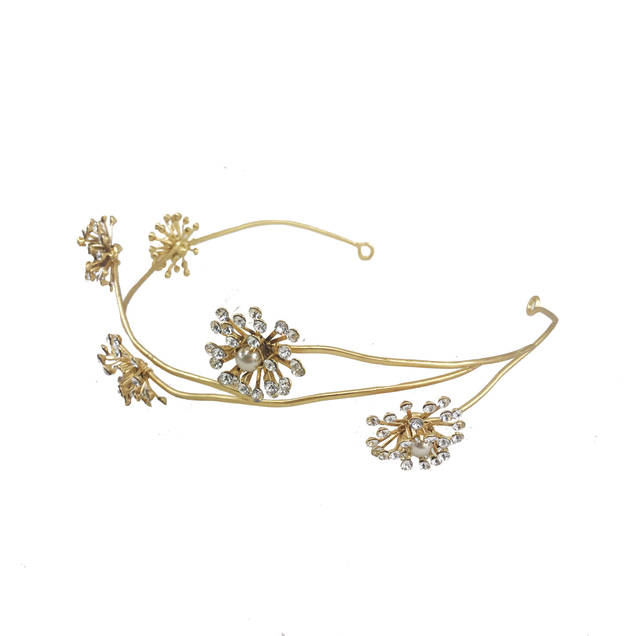 Tiara de laton con pompones de cristal de swarovski y perlas