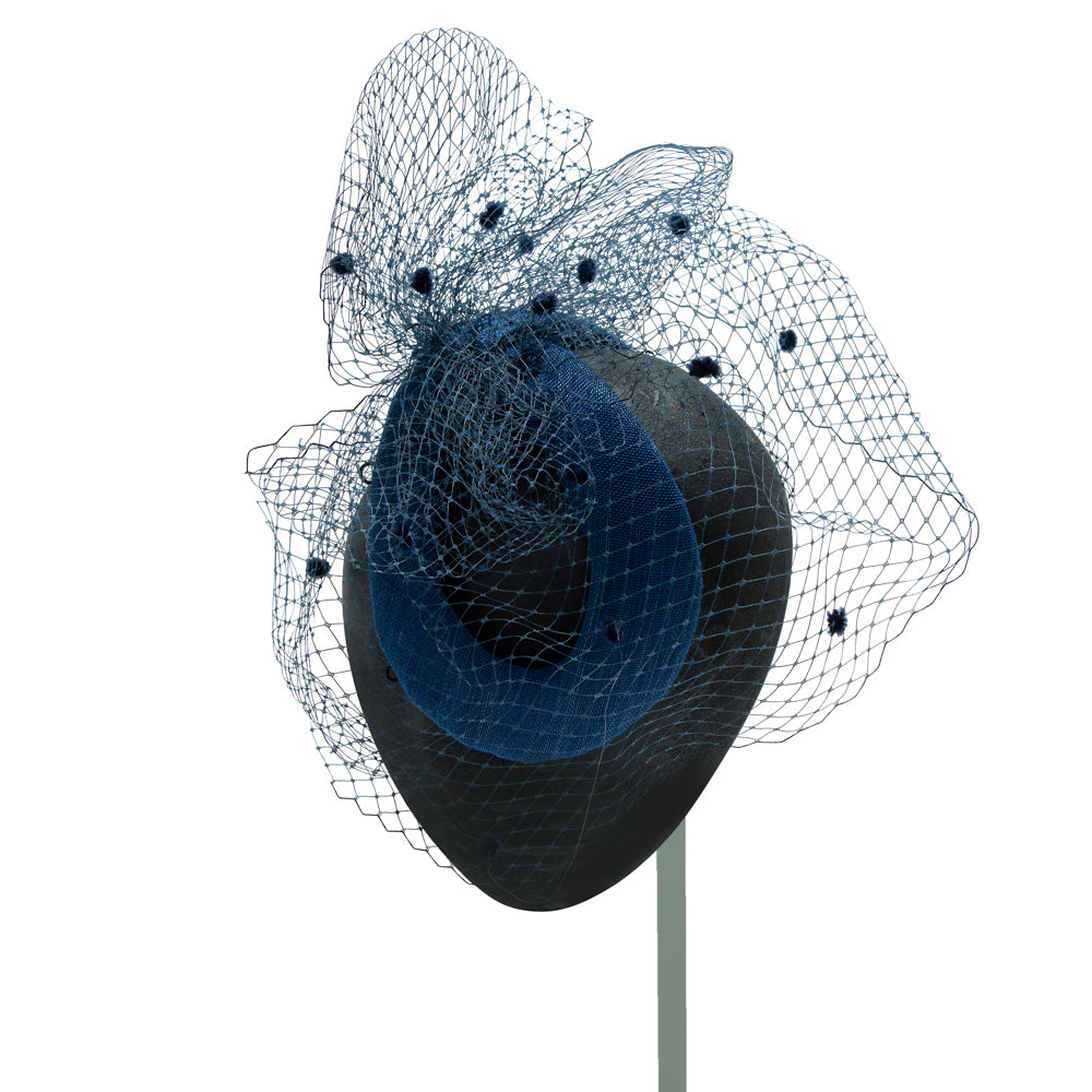 Estructura azul marino en forma de ocho con velo de plumeti al tono
