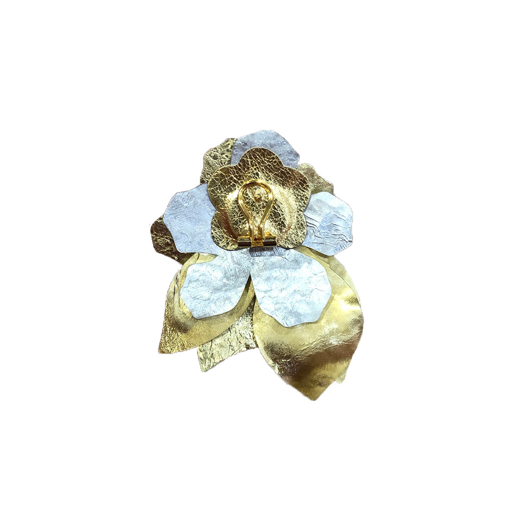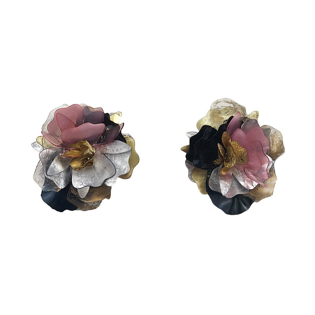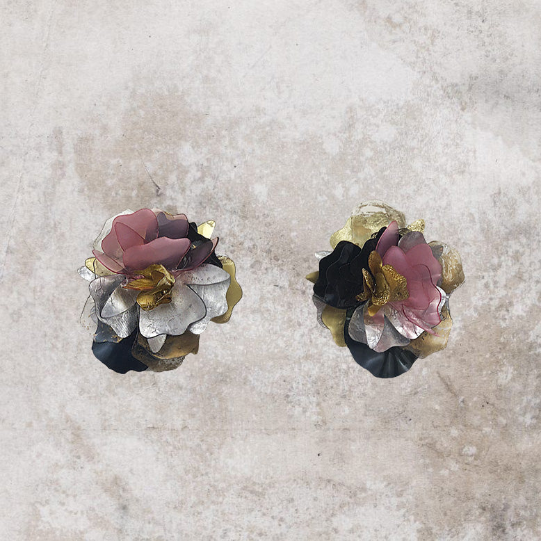 Brilla con los pendientes GoldenFlor realizados con plásticos reciclados y moldeados artesanalmente pieza a pieza. Ligeros, sostenibles y artesanos.