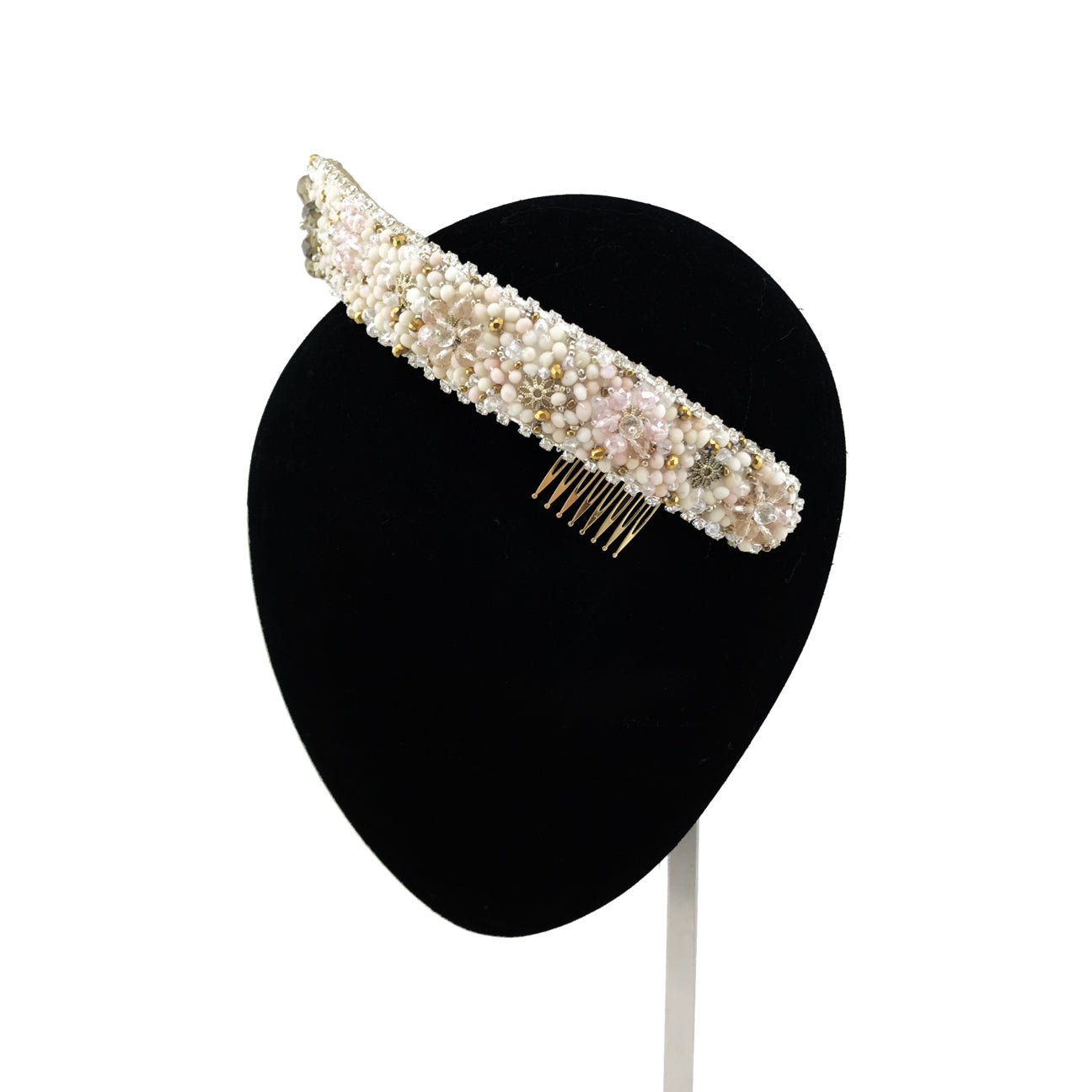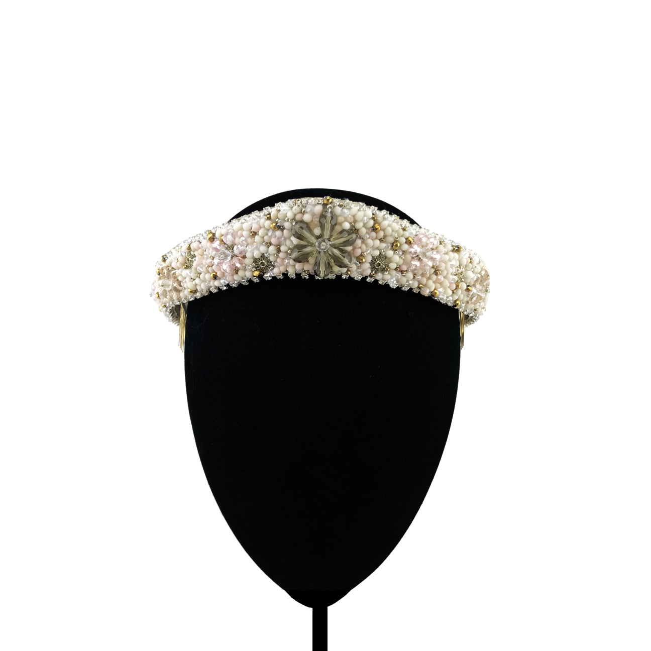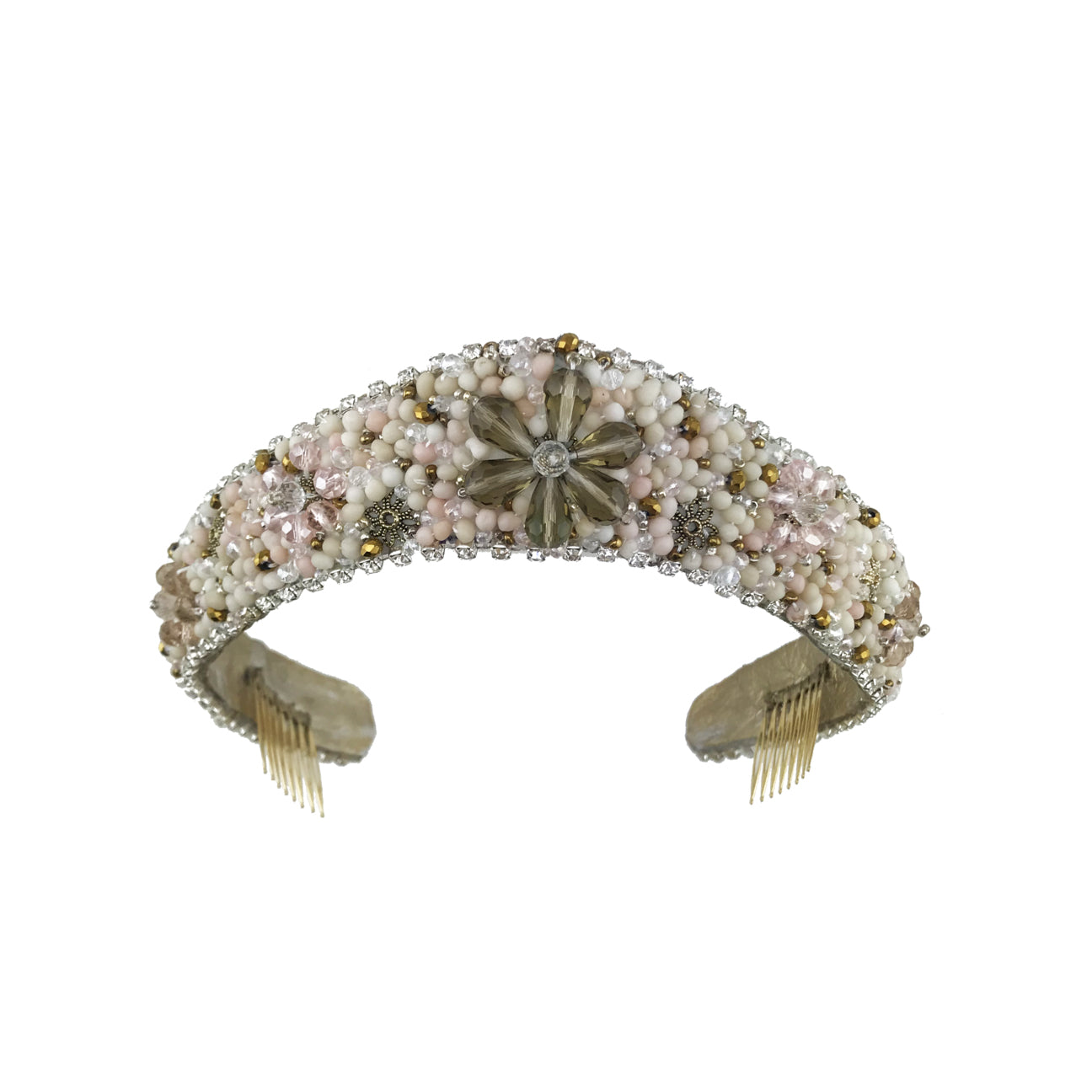 Tiara embroidered with cold porcelain beads and crystals in ecru and nude tones