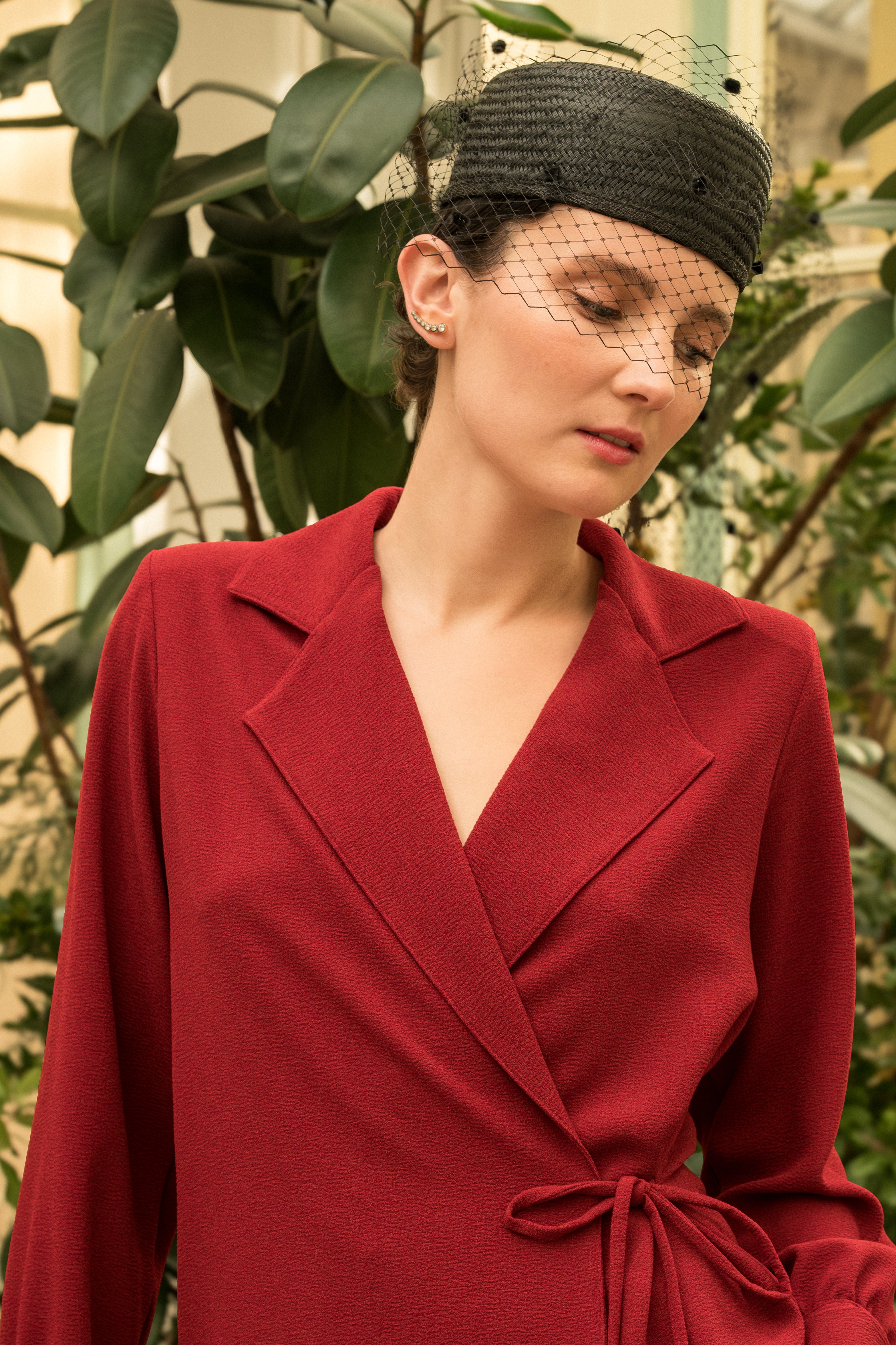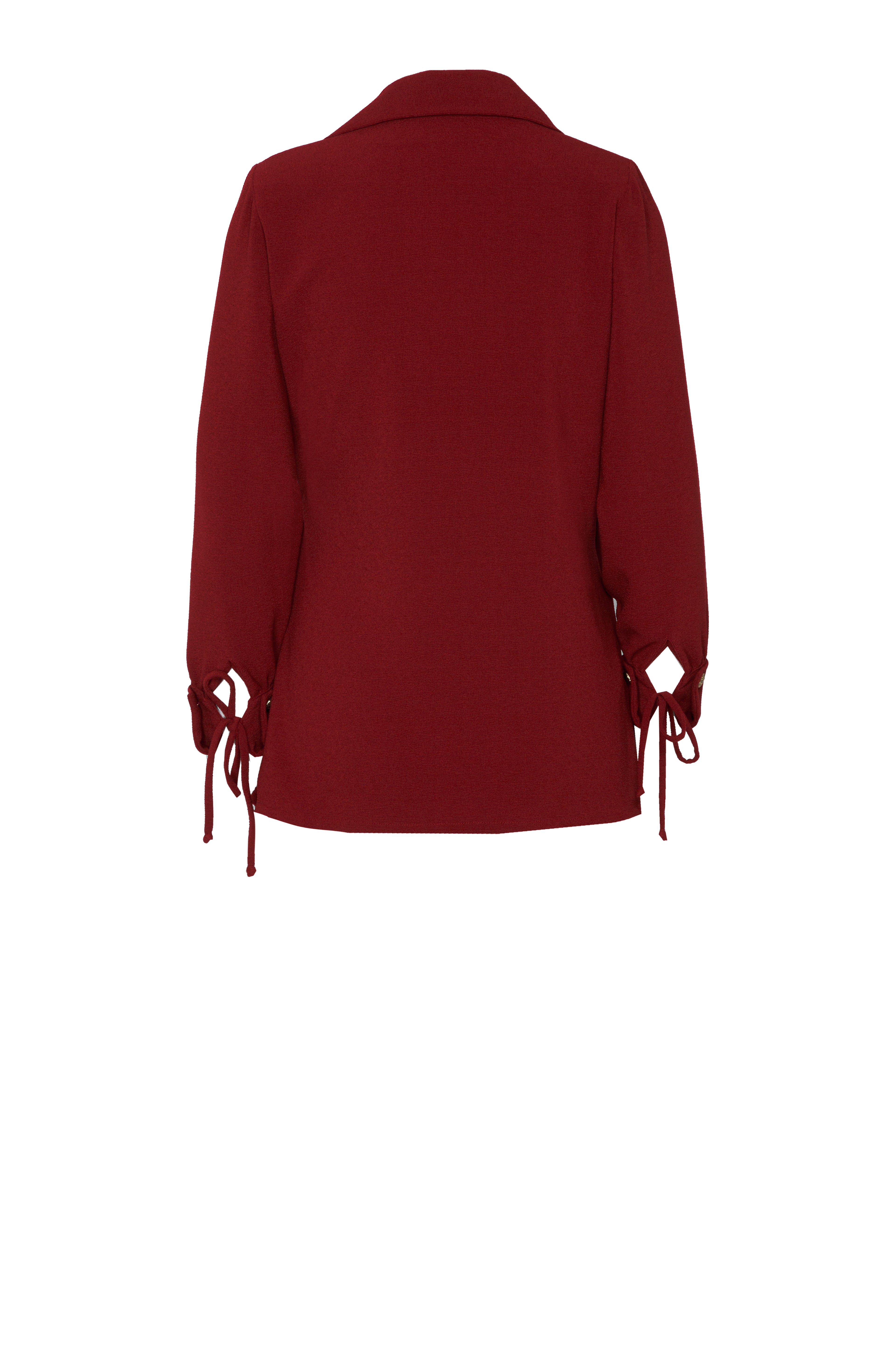 Chaqueta en crepe granate con lazada lateral.