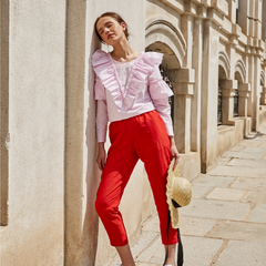 El diseño en cuadrícula juega con el contraste de dos tipos de piel, aportando textura y profundidad visual. La hebilla, también forrada en piel, completa el conjunto con un acabado sofisticado y atemporal. Además, incorpora una presilla móvil que permite ajustar el cinturón tanto a la cintura como a la cadera, adaptándose a diferentes estilos y siluetas.