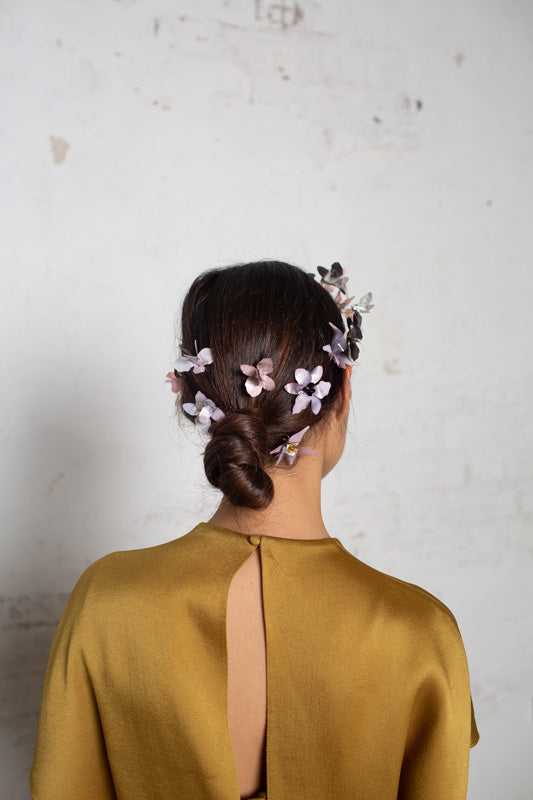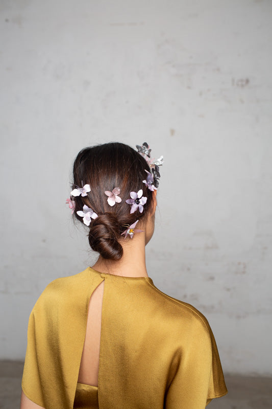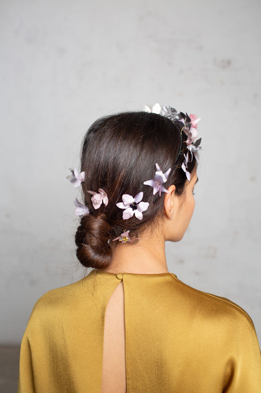 The Teresa Couture headband does not include the flower hairpins for the bun.