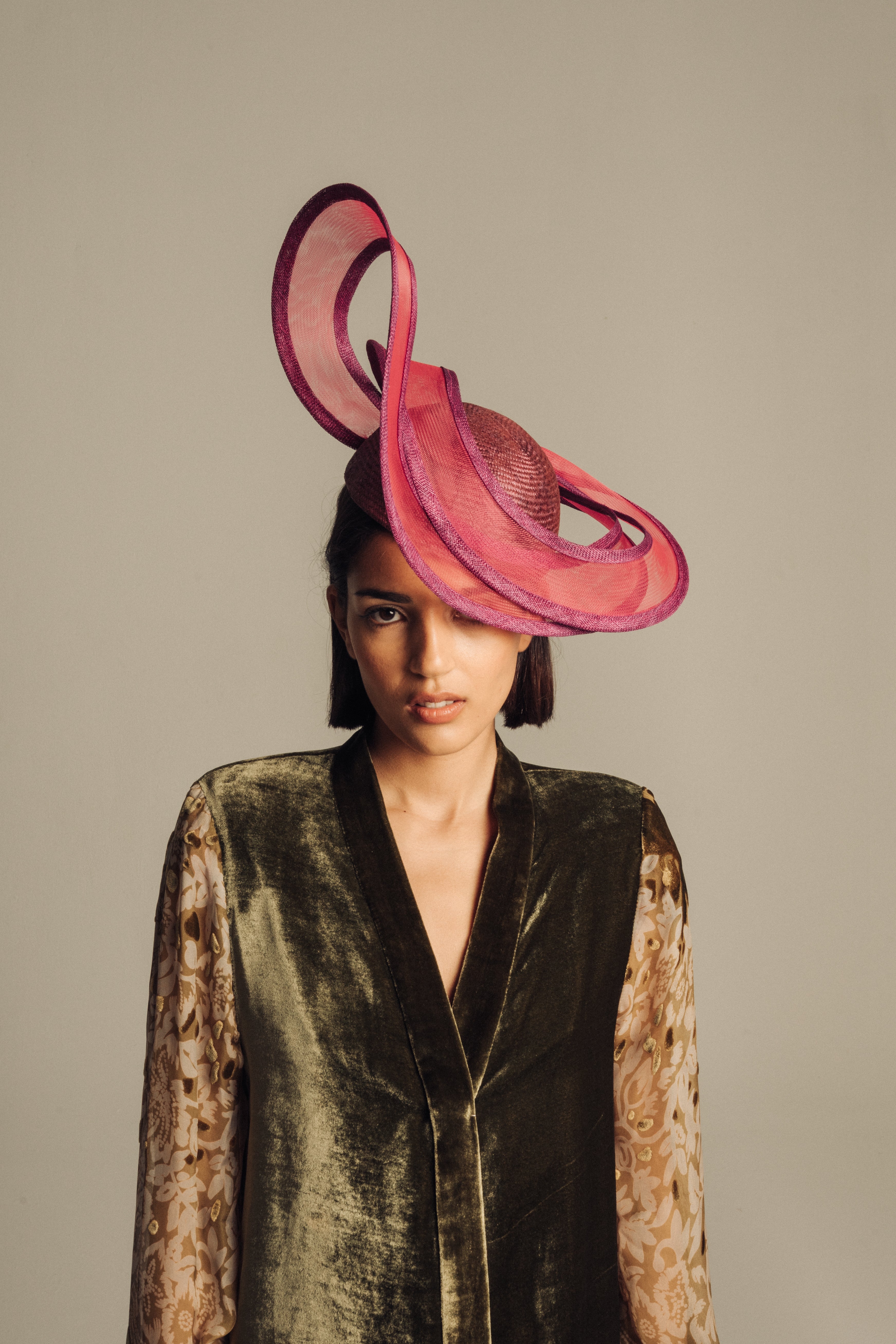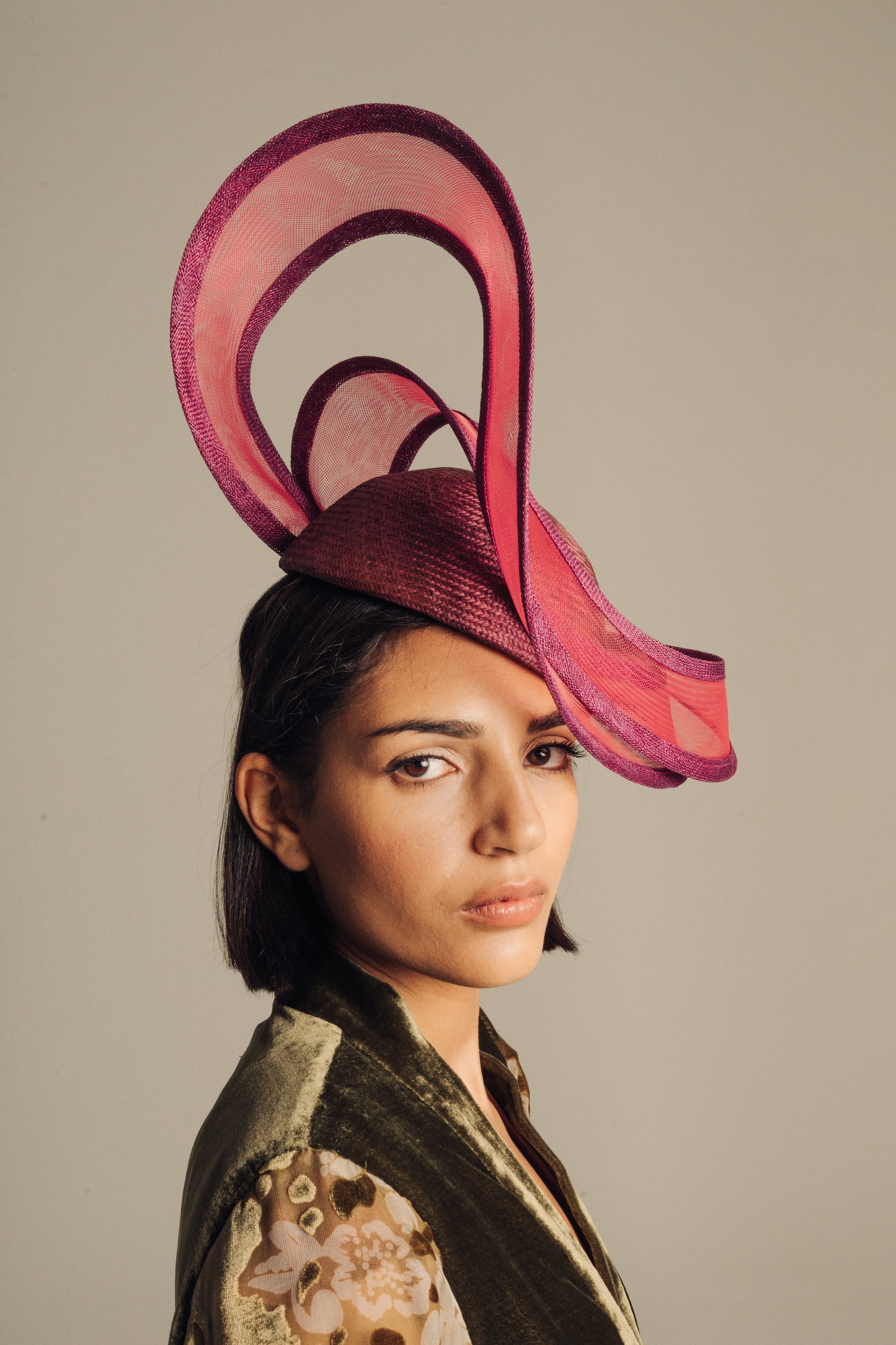 Purple parasisal cap with double circumference of modeled horsehair in height.