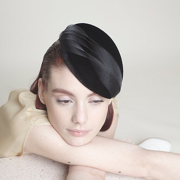 Black velvet lined cap with matching horsehair waves