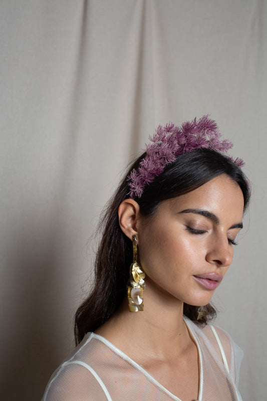 Headband of preserved Japanese leaves in old pink