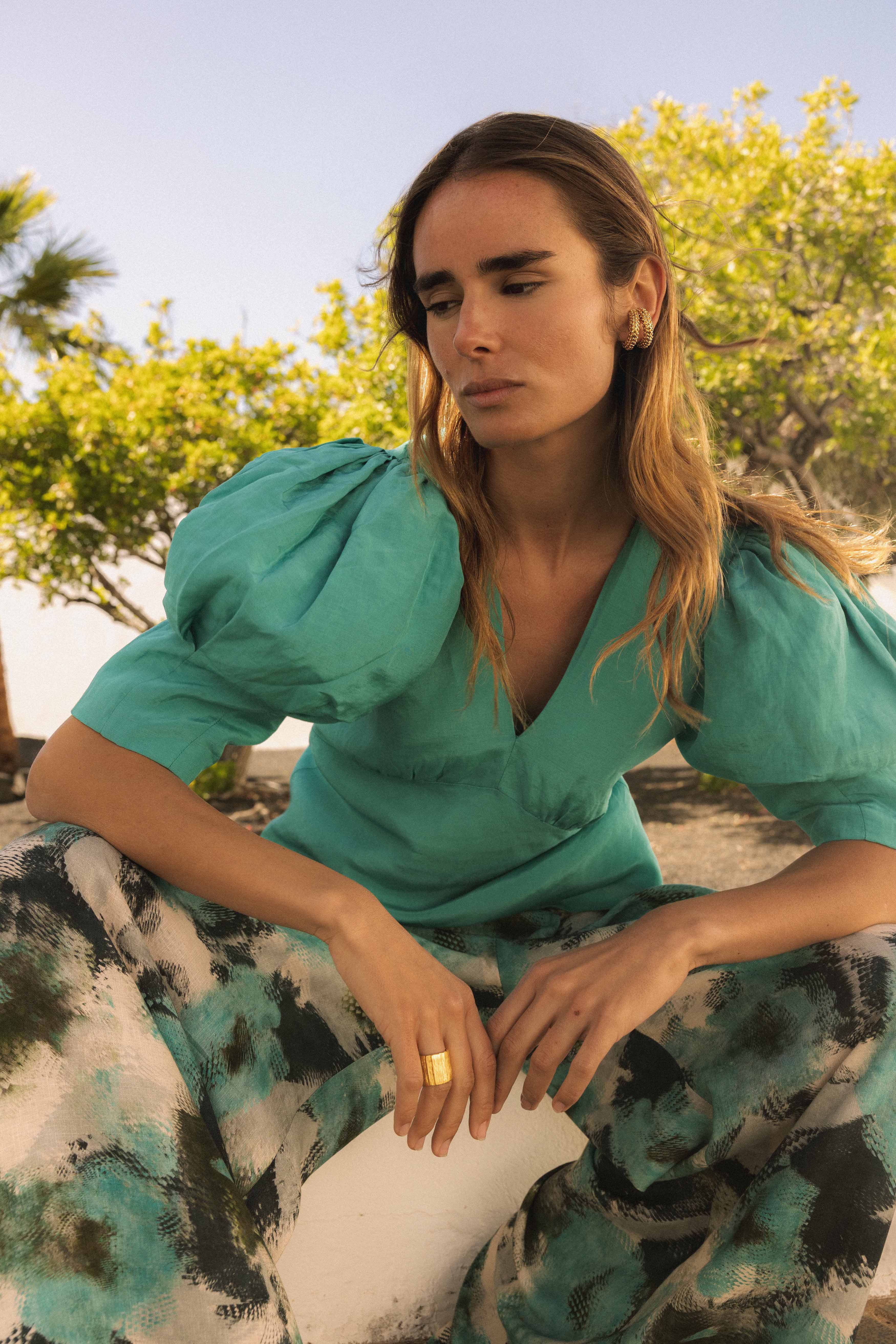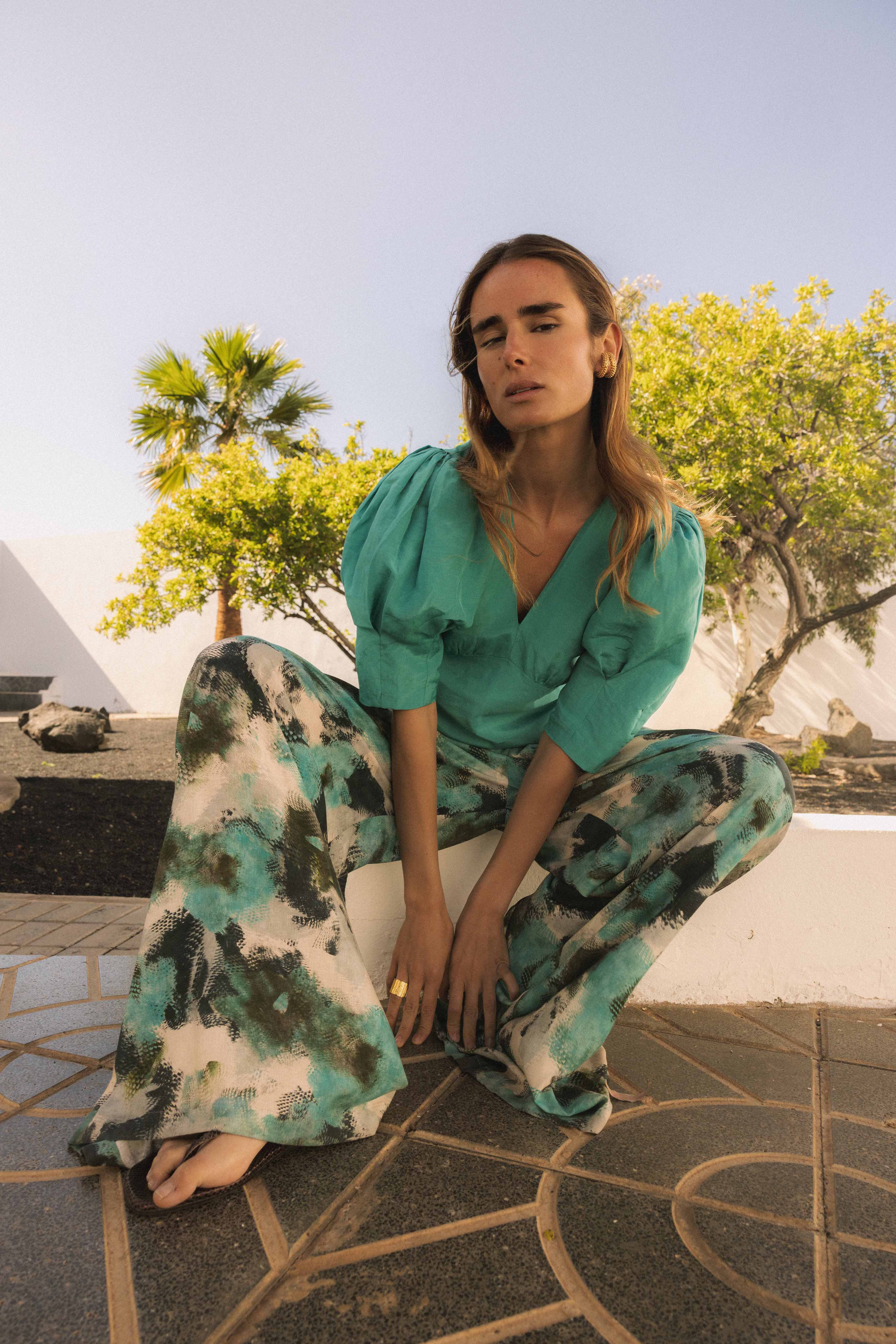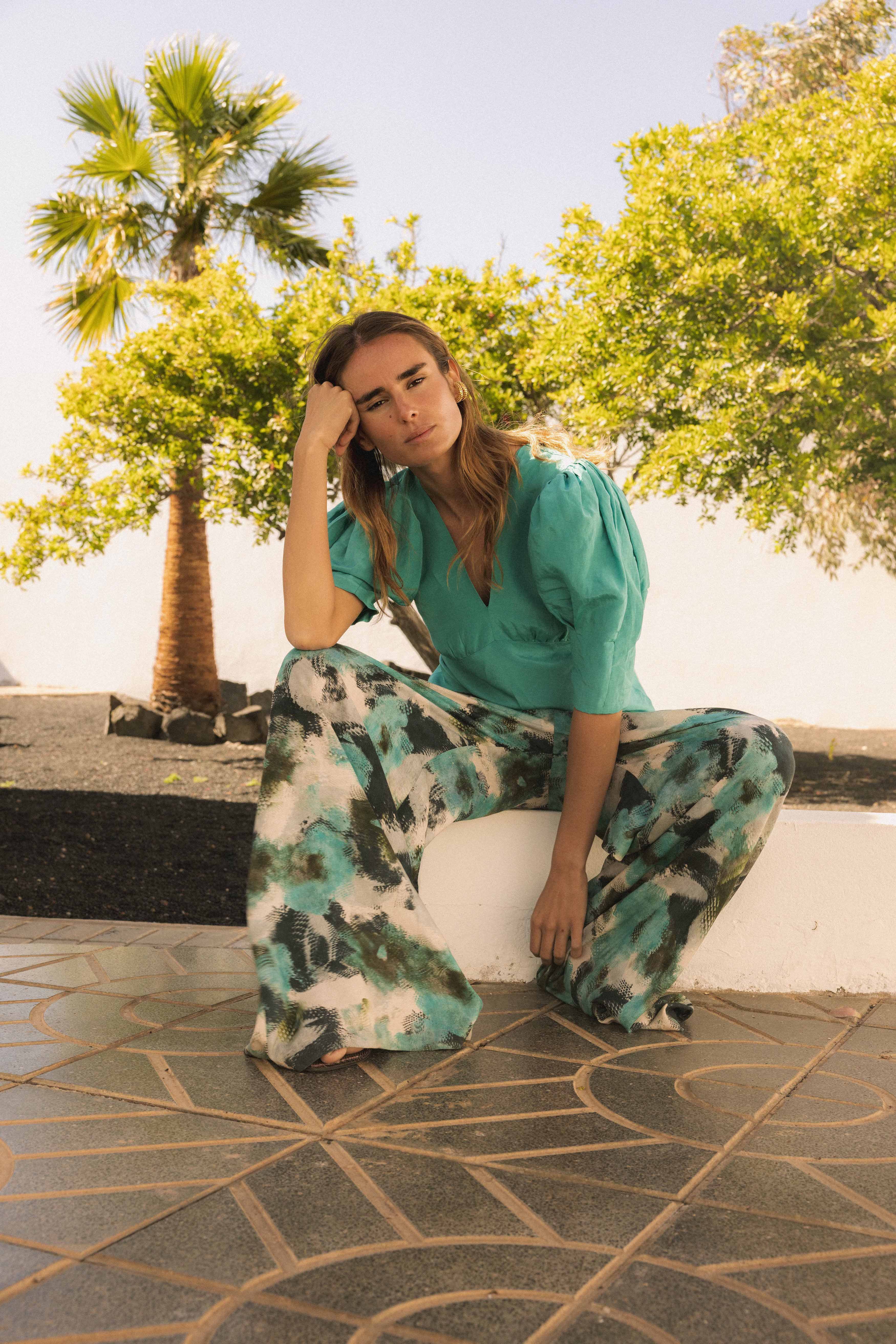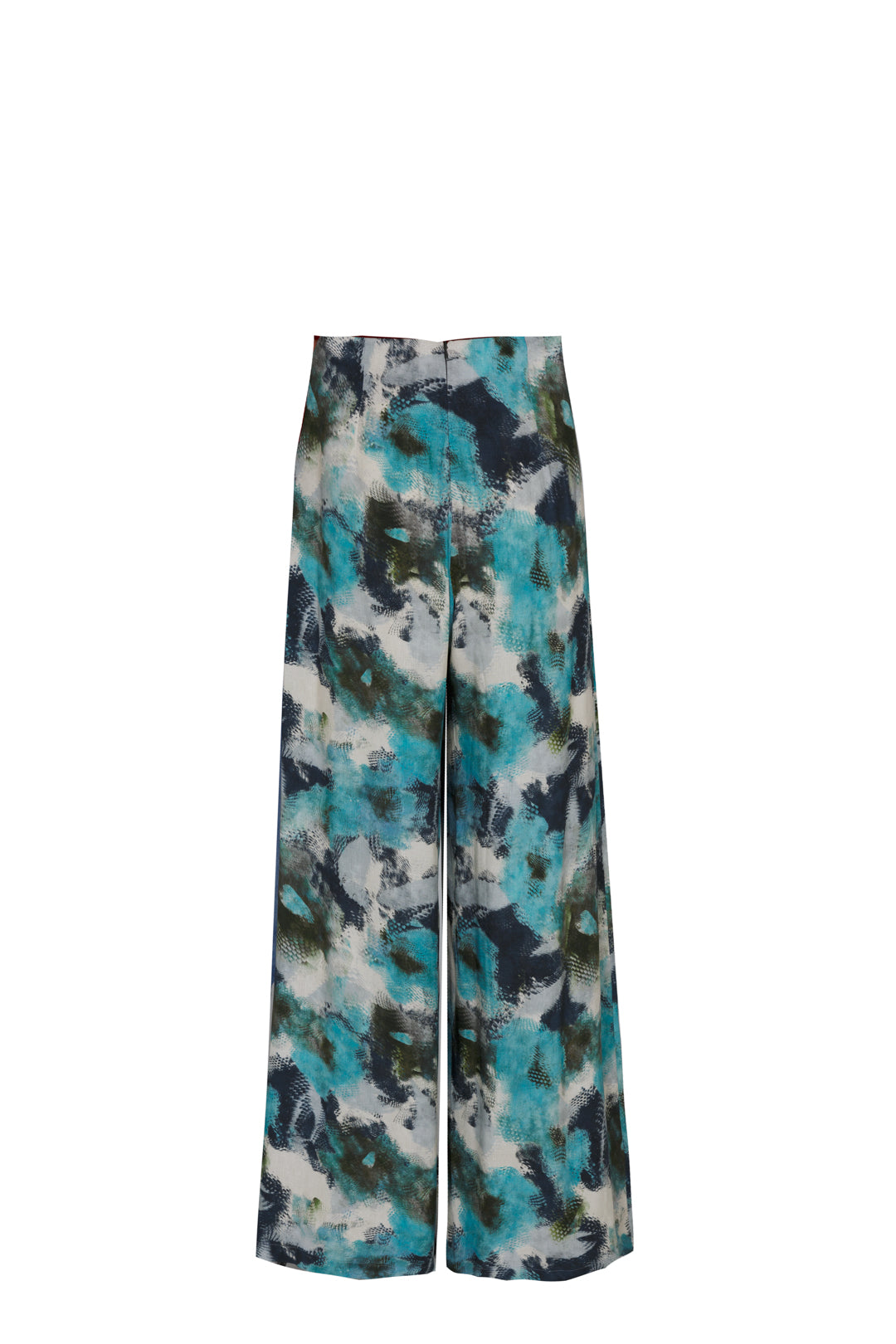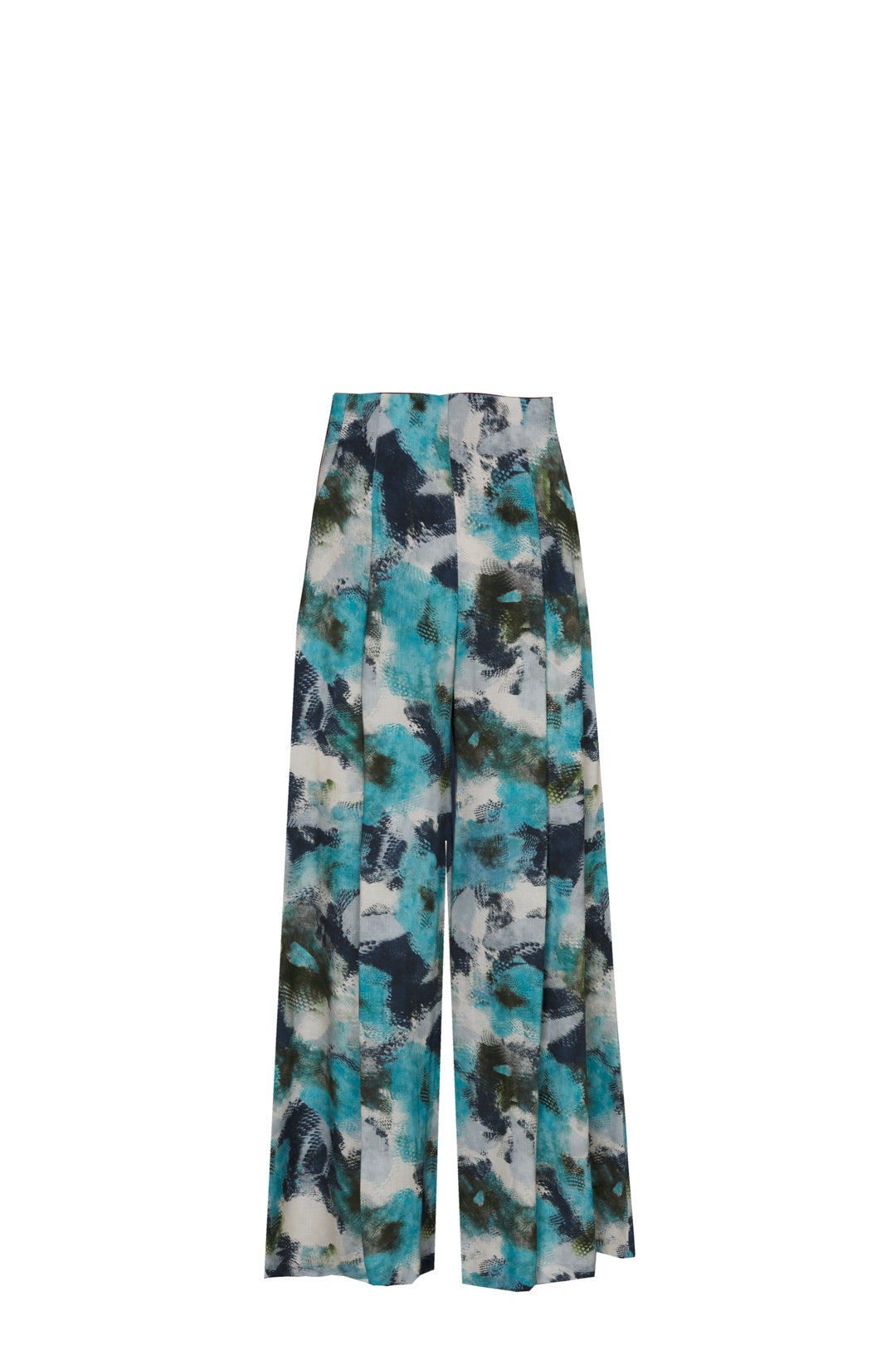 Pantalón palazzo con talle alto y pinzas, con bolsillos laterales.