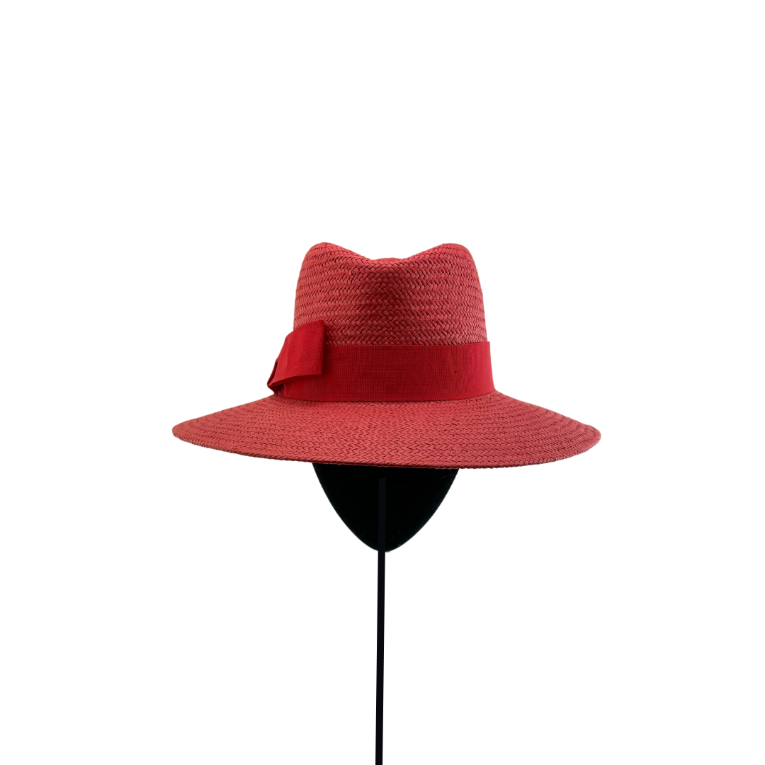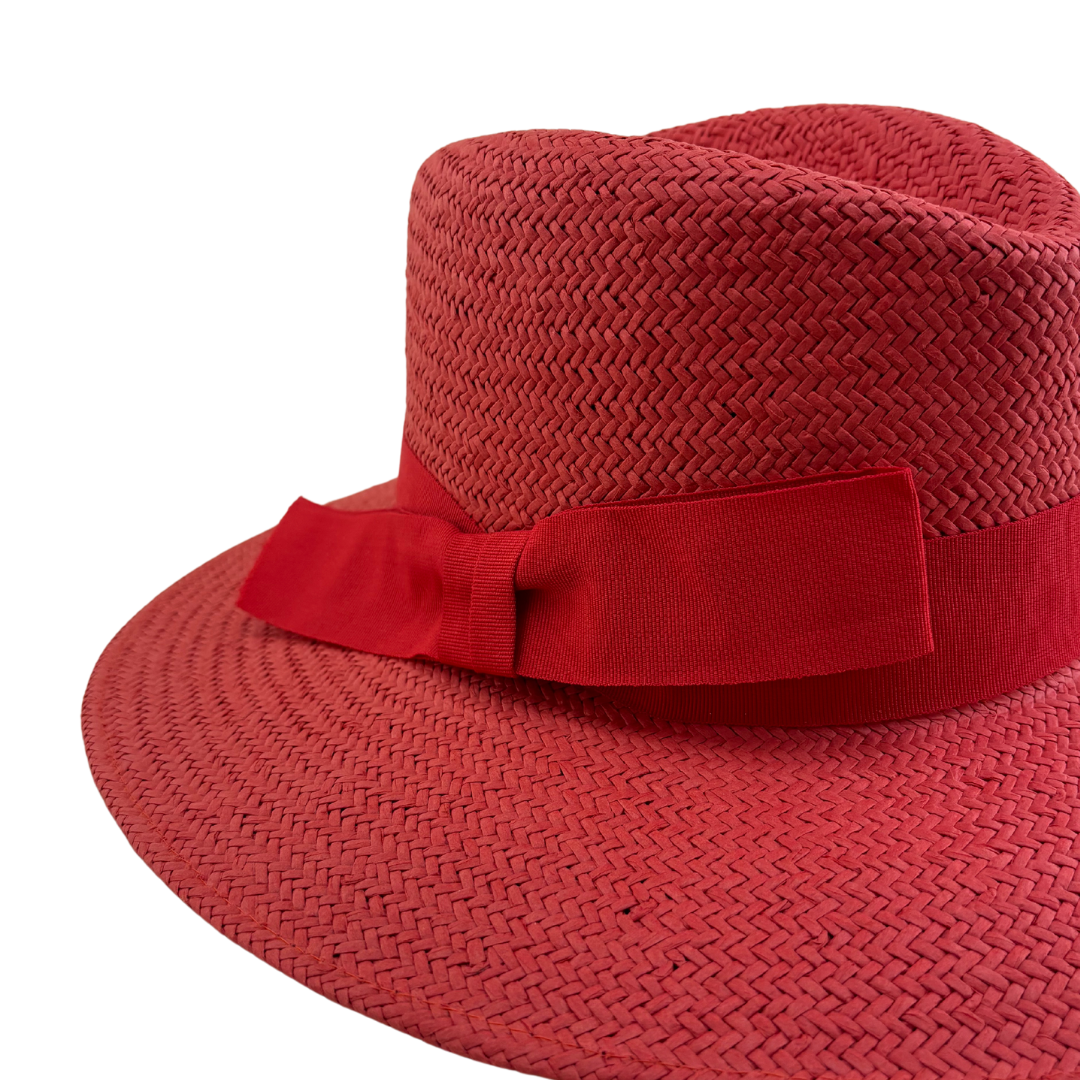Adjustable red hat made of natural fiber with red grosgrain and classic crown