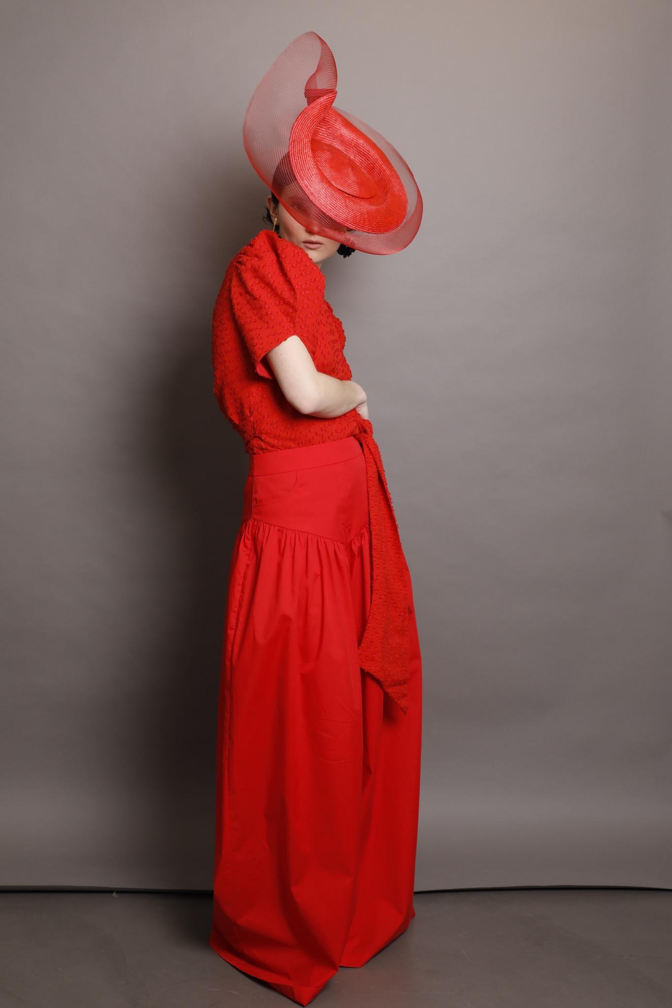 Dulcinea mediana en parasisal rojo con ala levantada y crin en el ala al tono