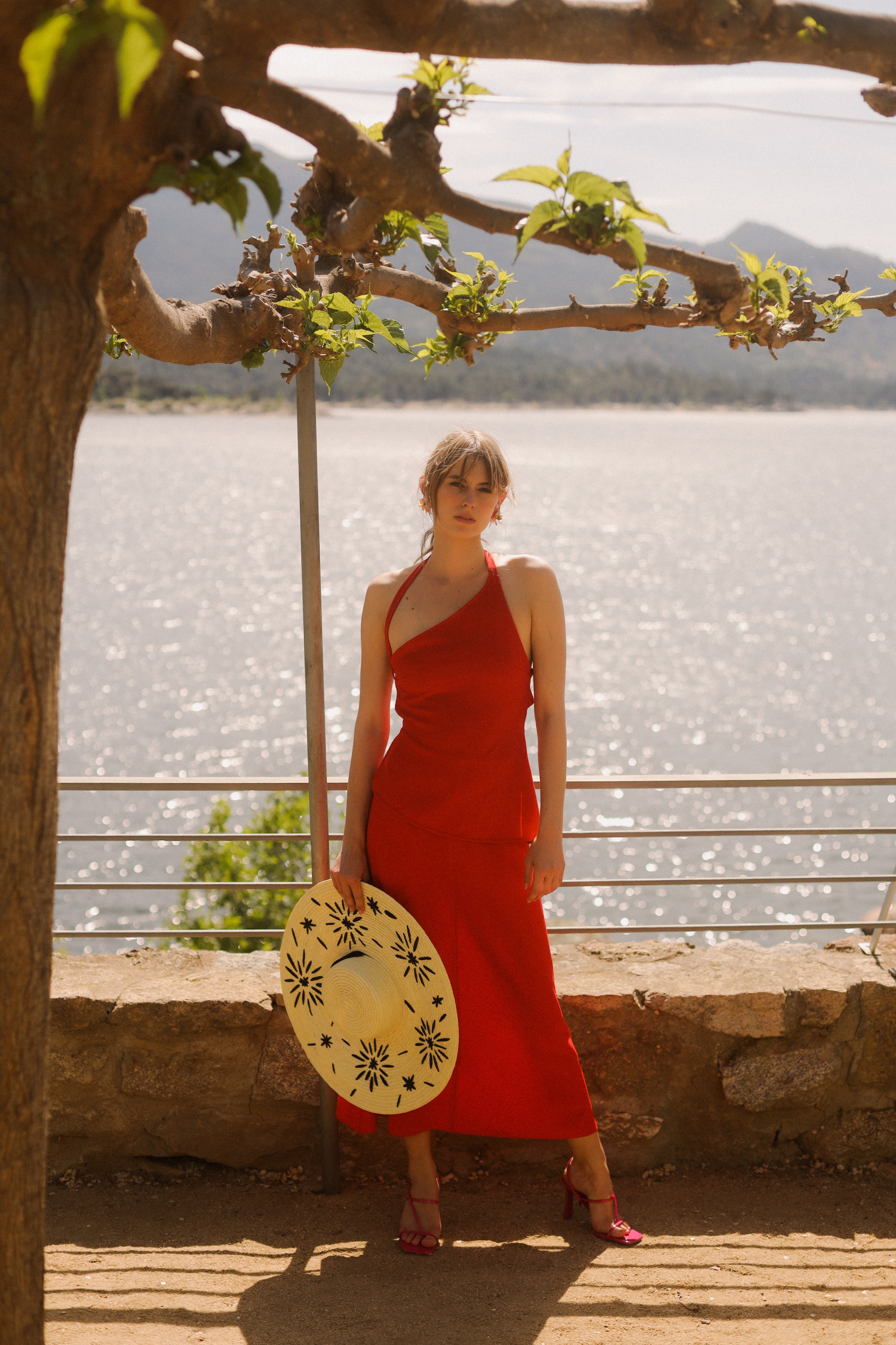 Asymmetrical top with open back and bows at the back.