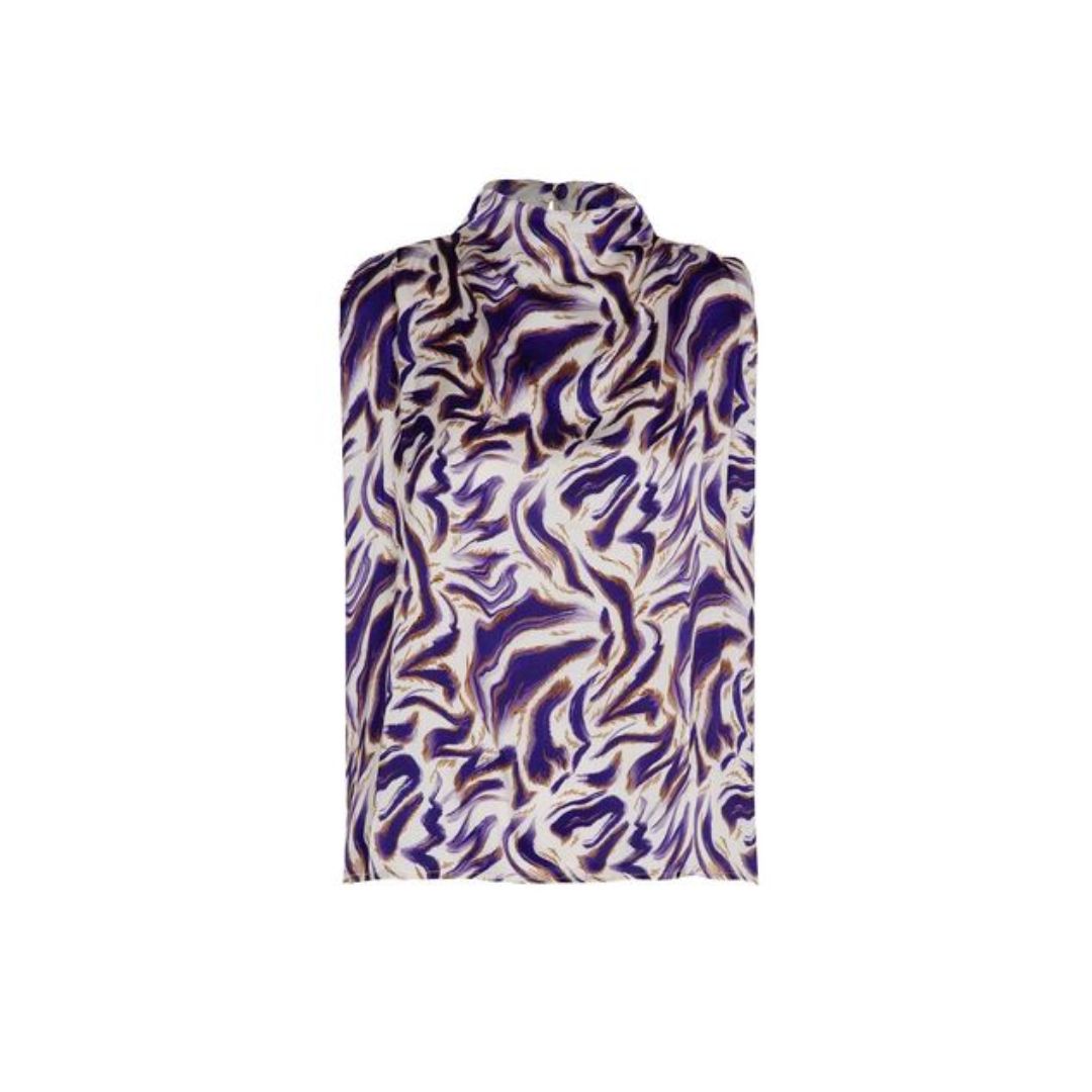 Shirt with shoulder pads, sleeveless and Perkins collar.