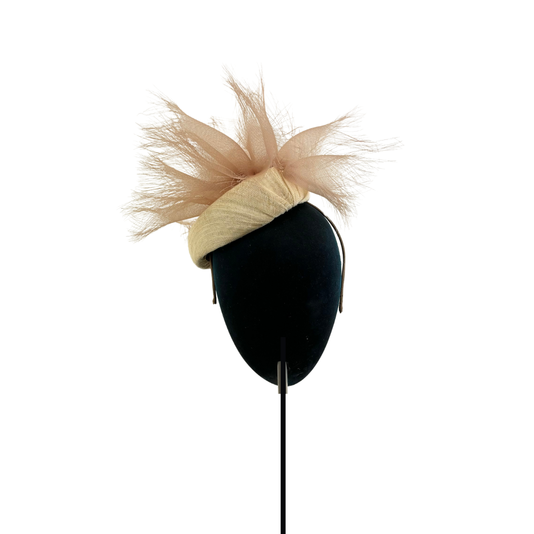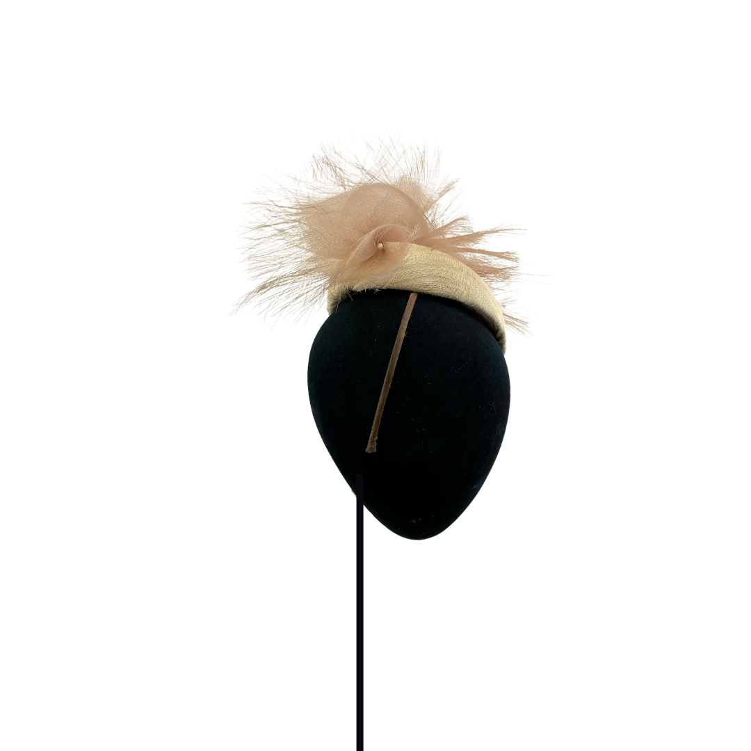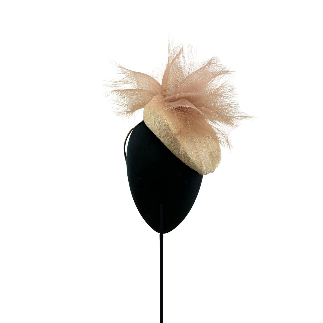 Casquete lagrima en rafia natural con flor de crin deshilachado nude