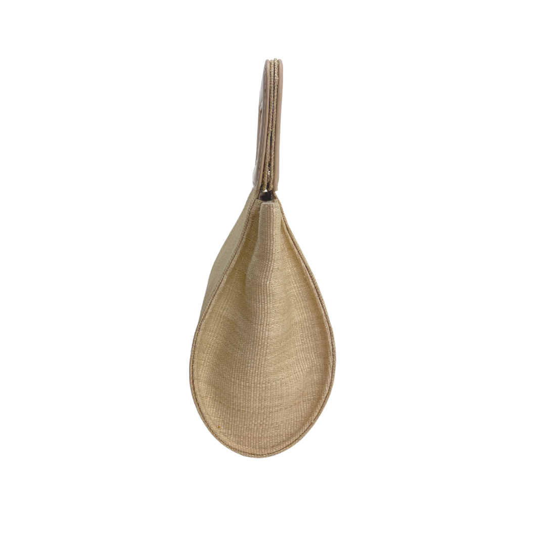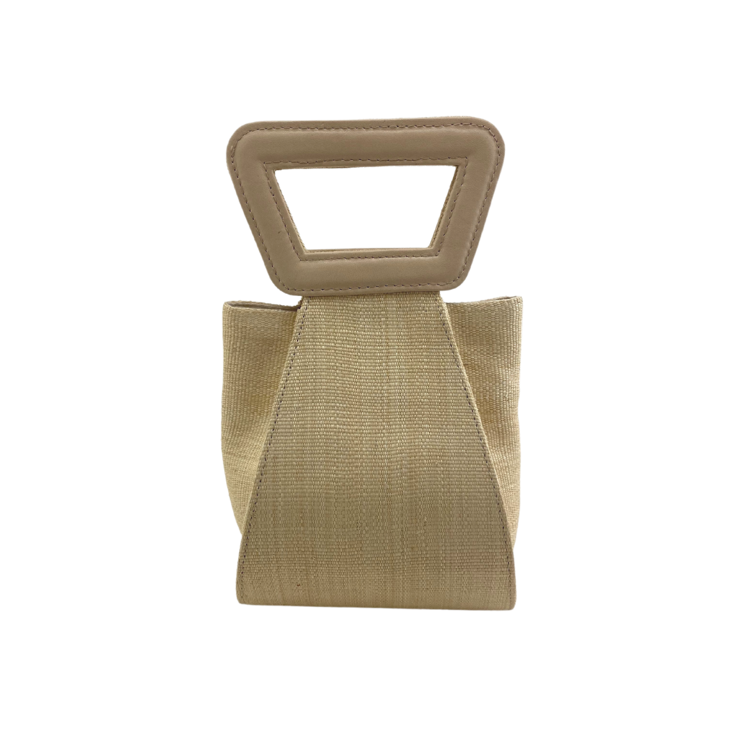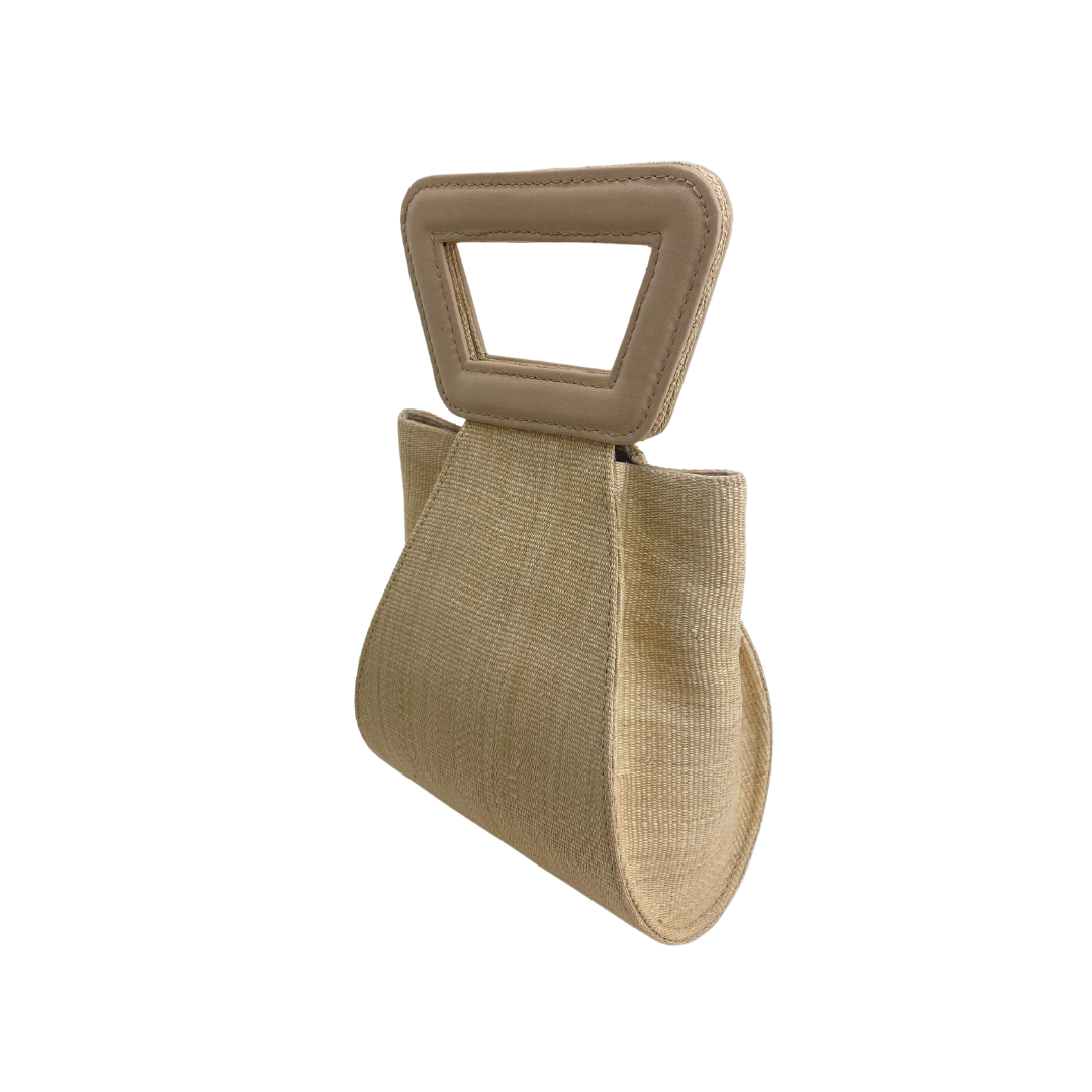 Bolso limosnera de tinalak en tono crudo con asa rectangular de piel beige