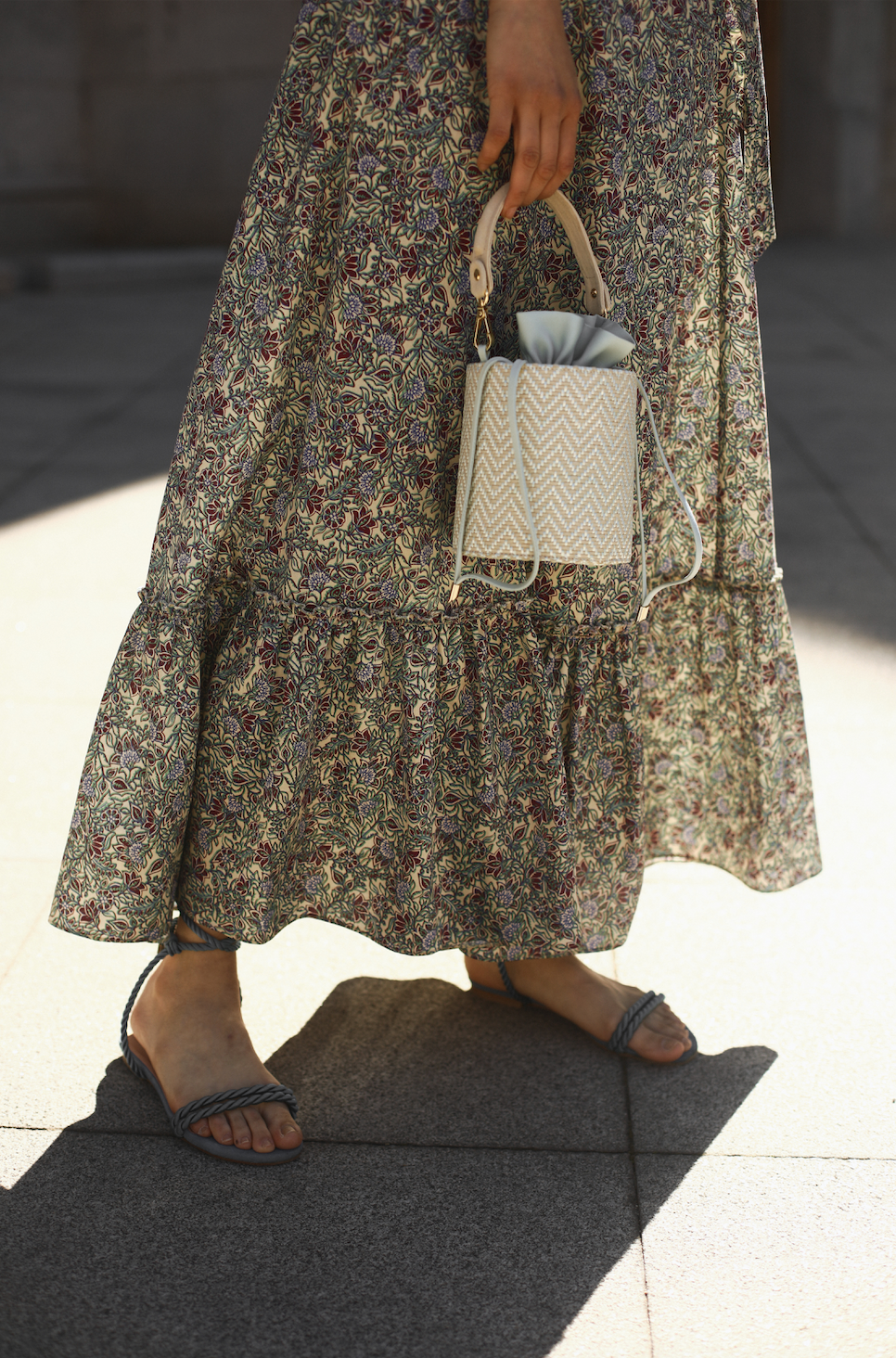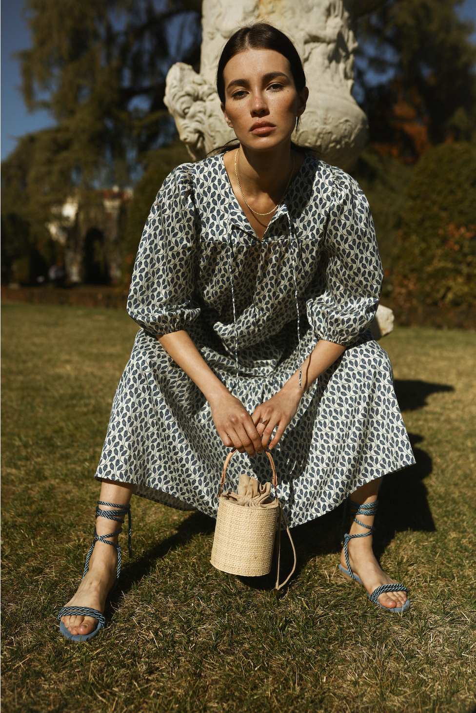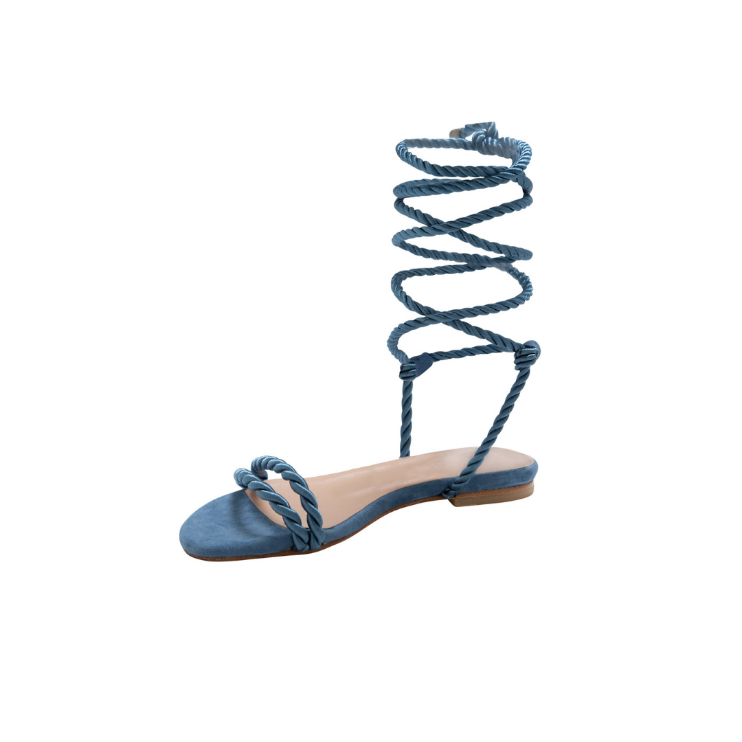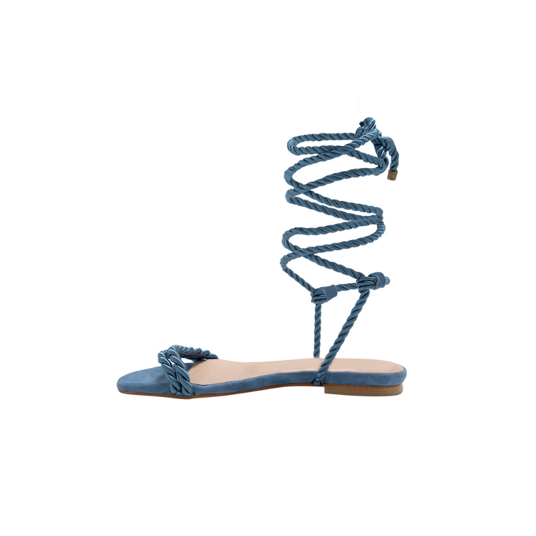 Sandalia plana de piel con tiras de cordón de seda para anudar al tobillo a tu manera.