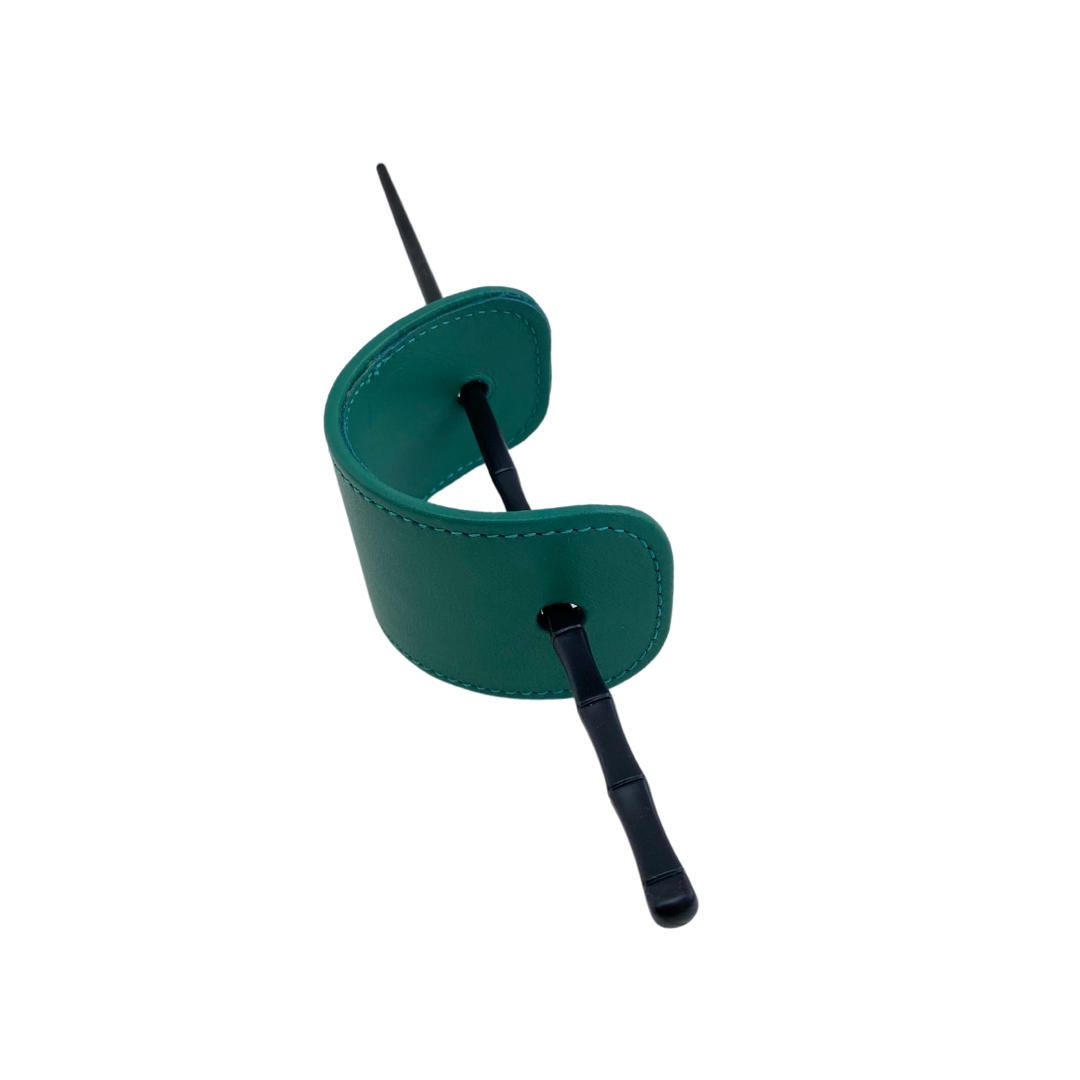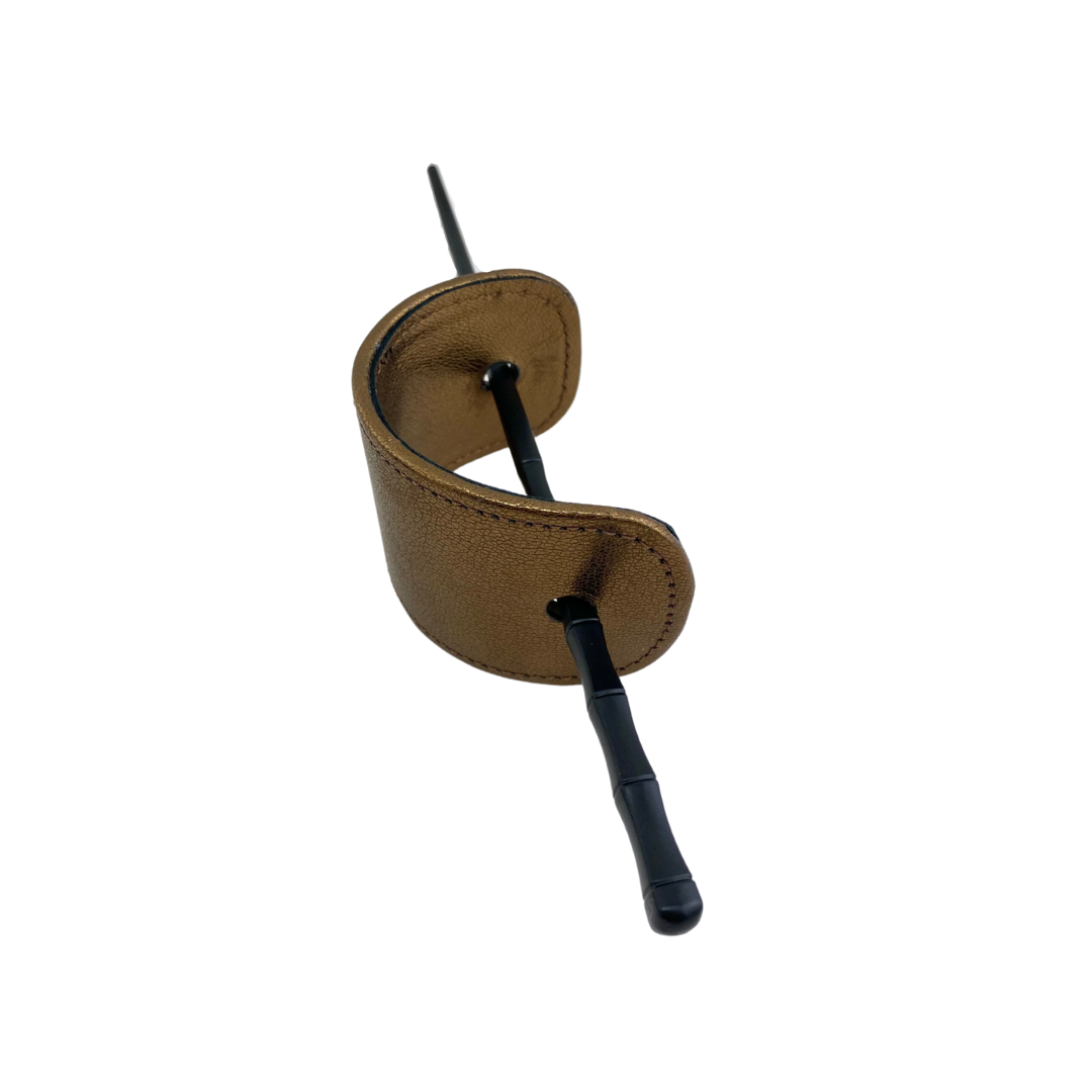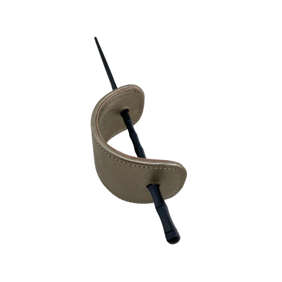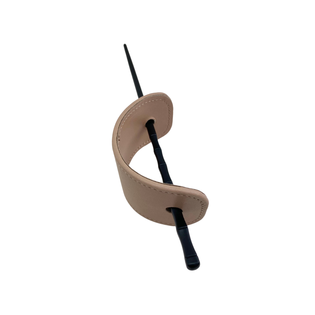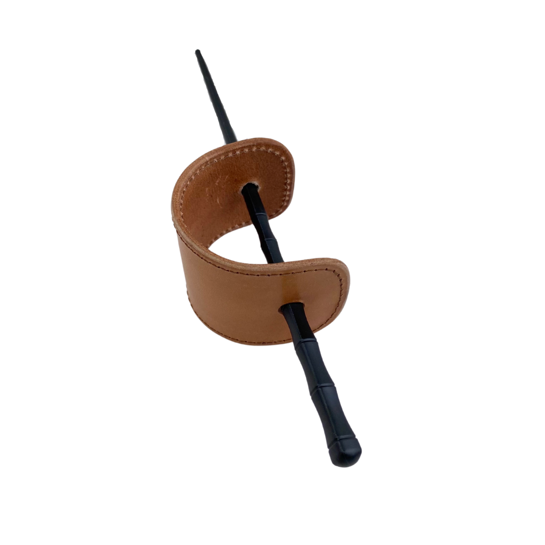 Coletero de piel con palillo negro.