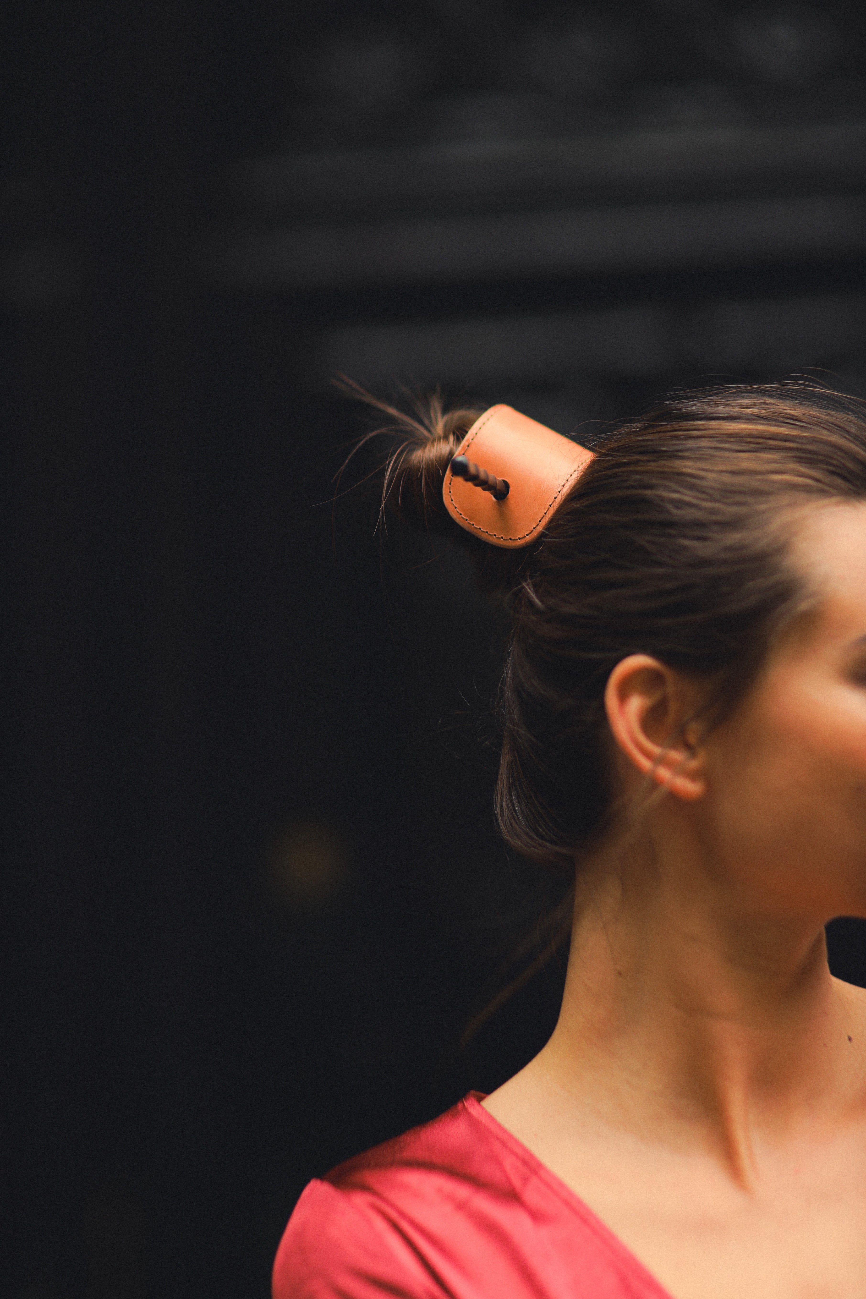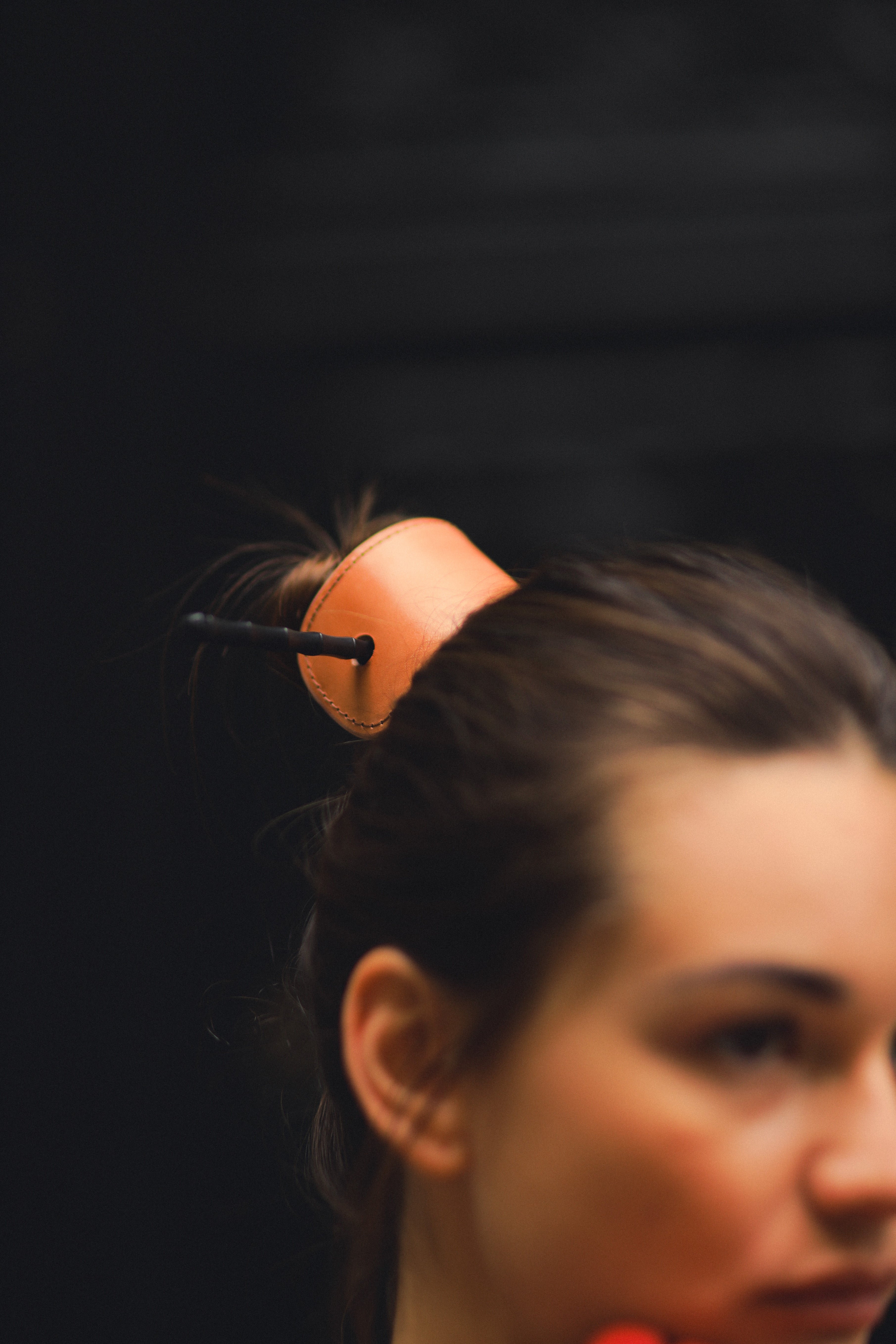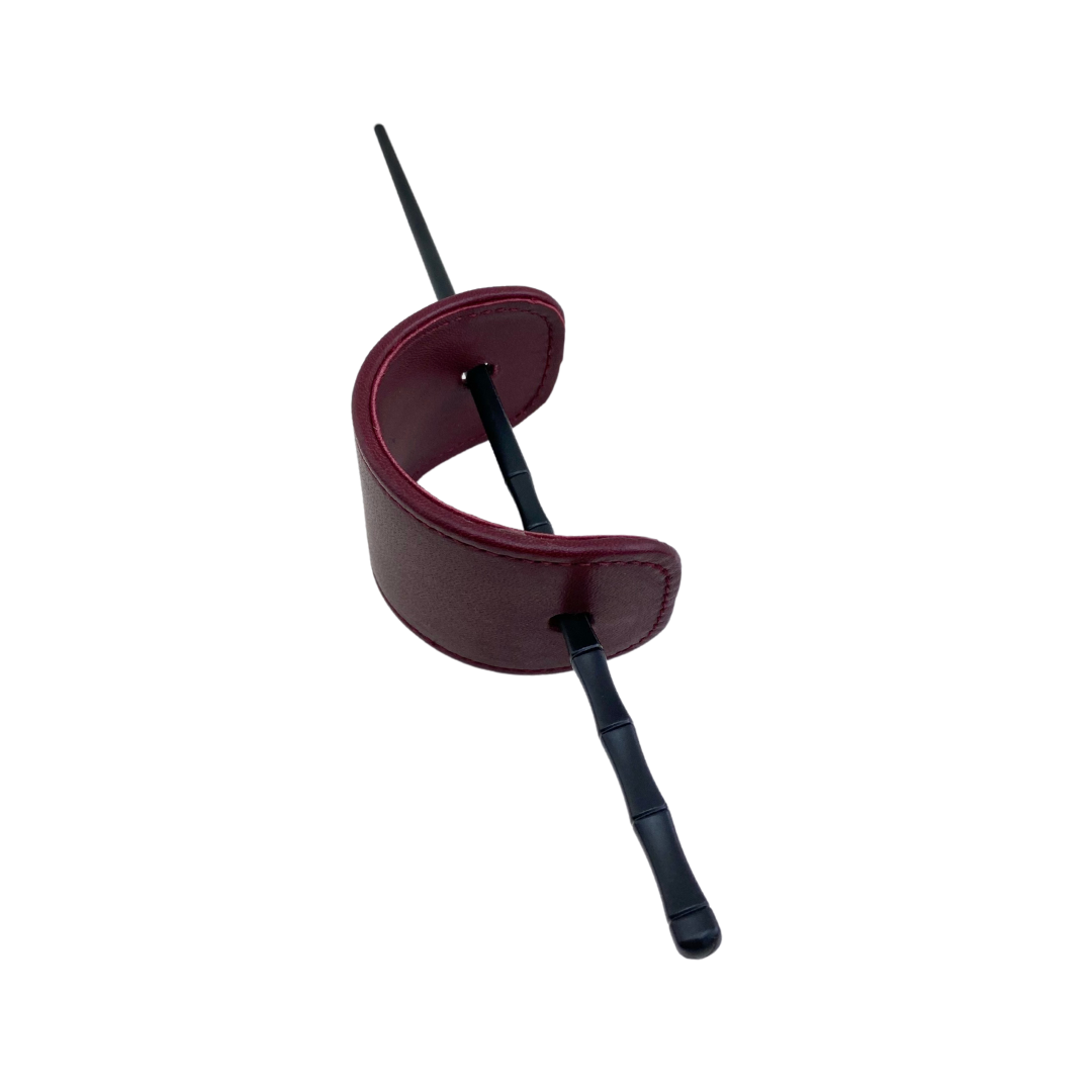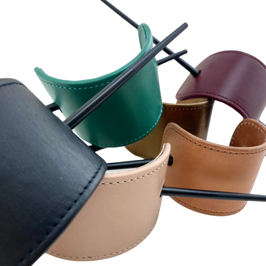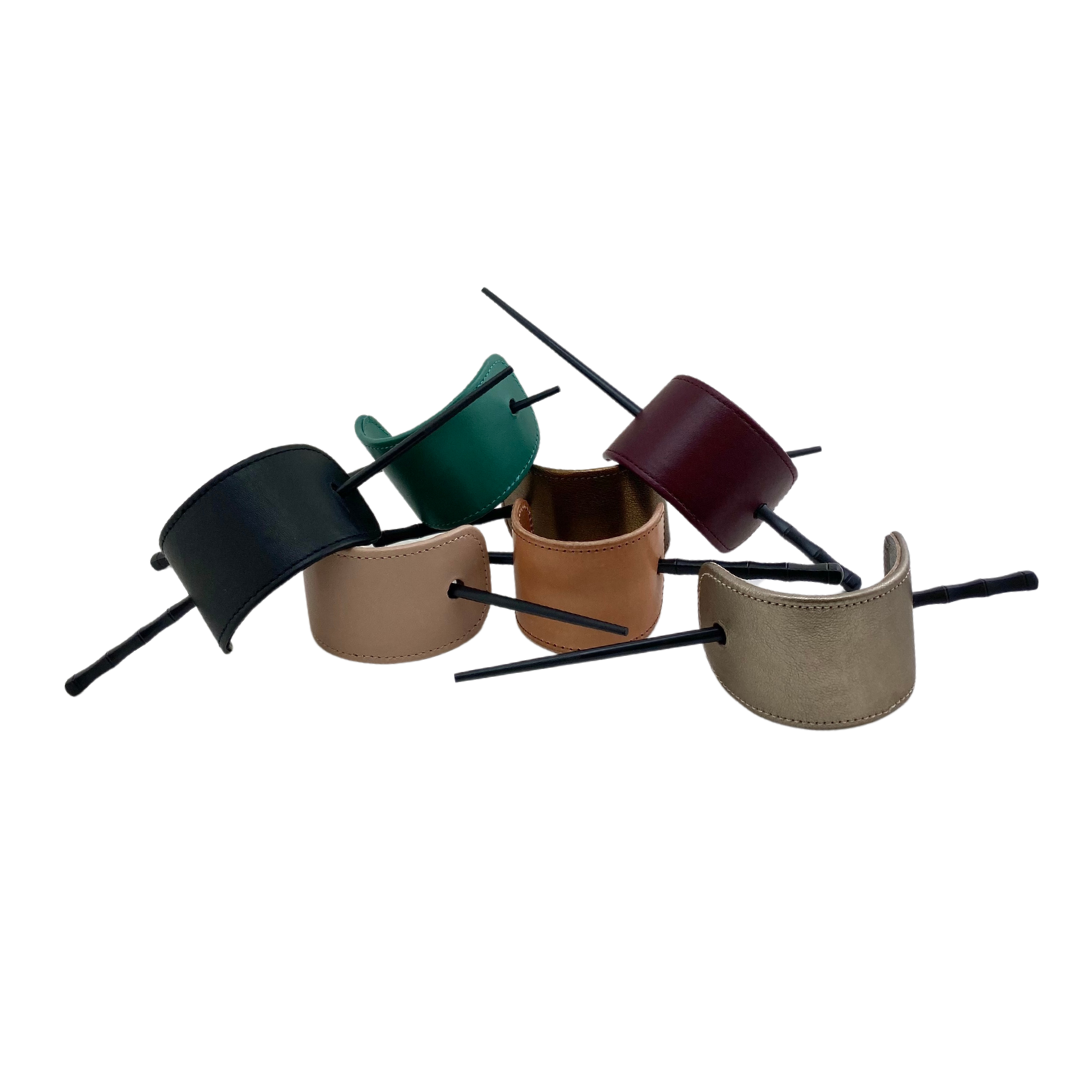 Coletero de piel con palillo negro.