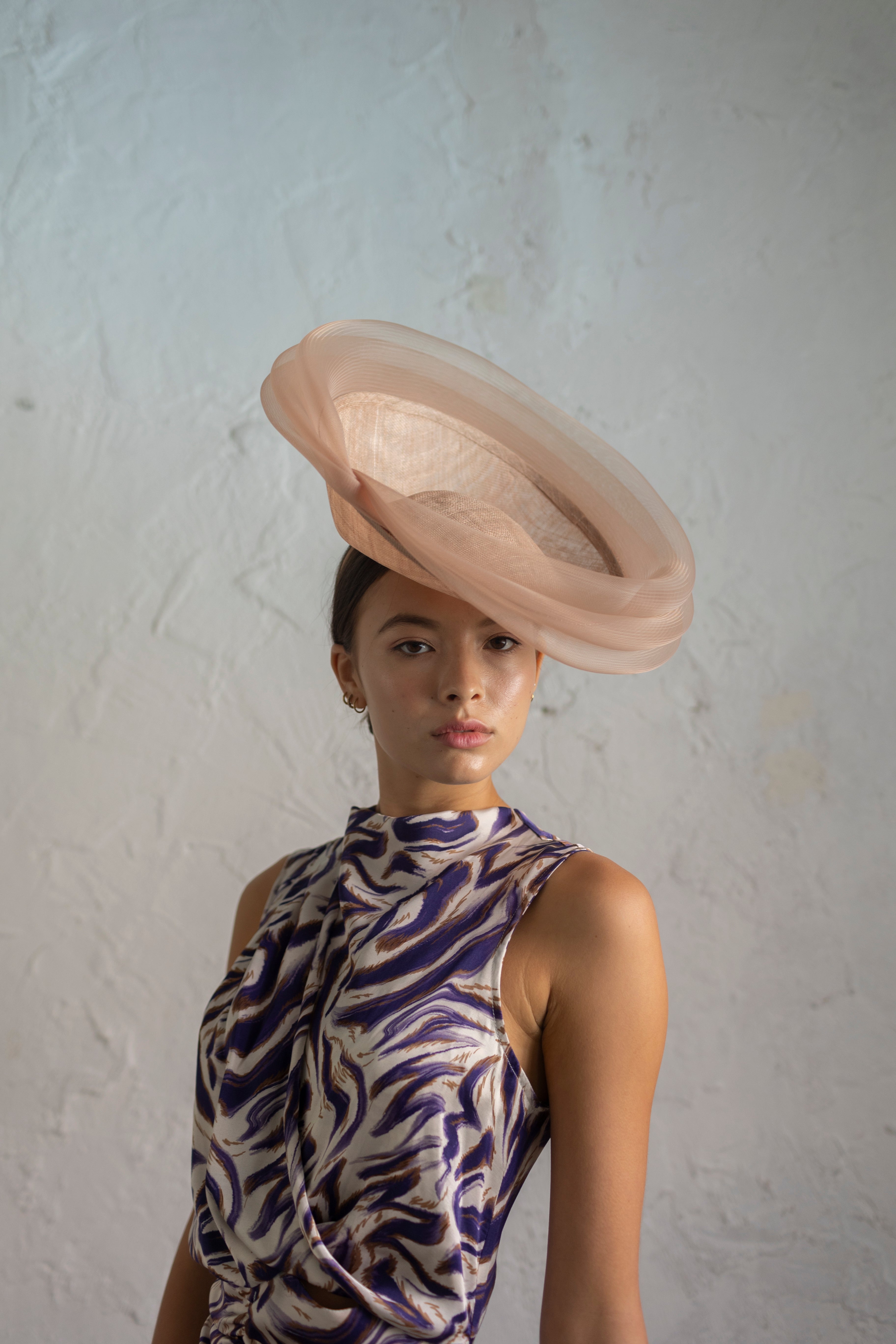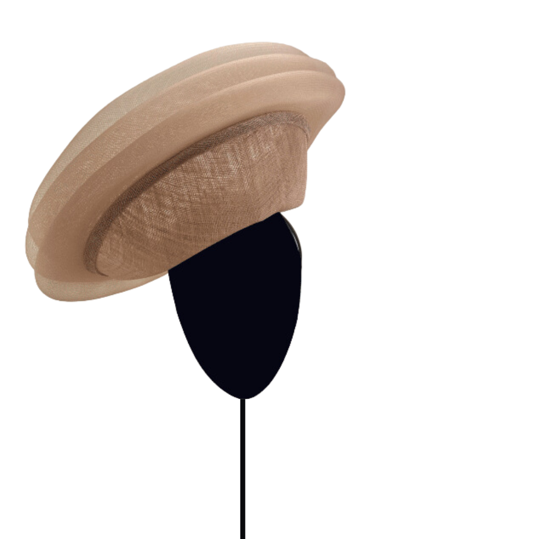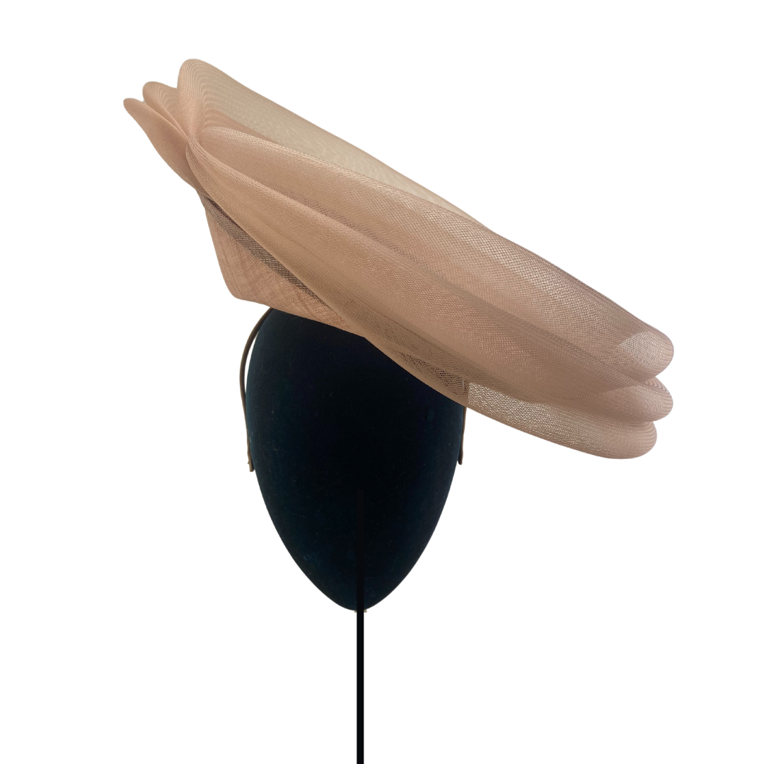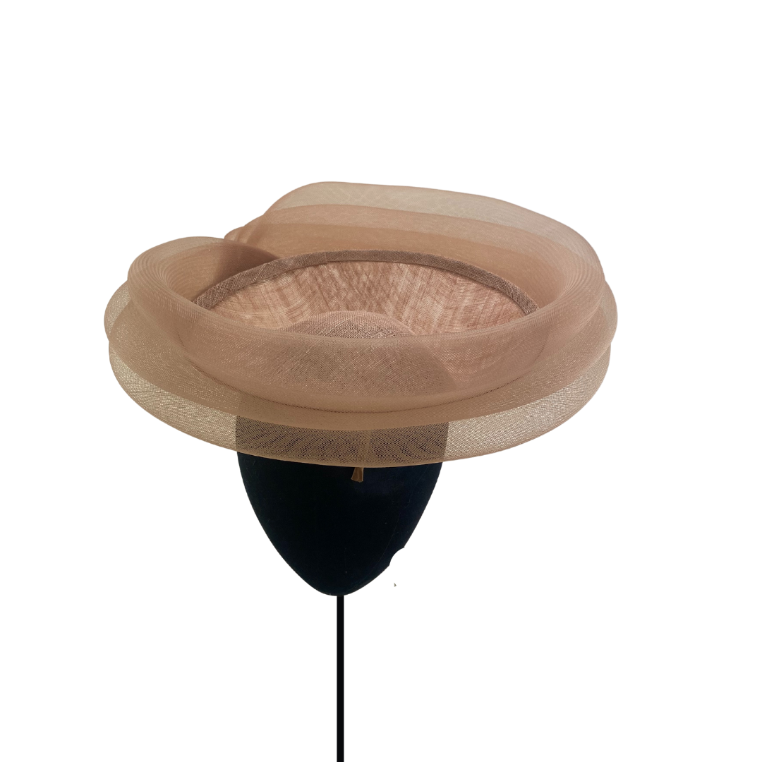 Dulcinea de sinamay rosa nude con triple ondeado de crin al tono