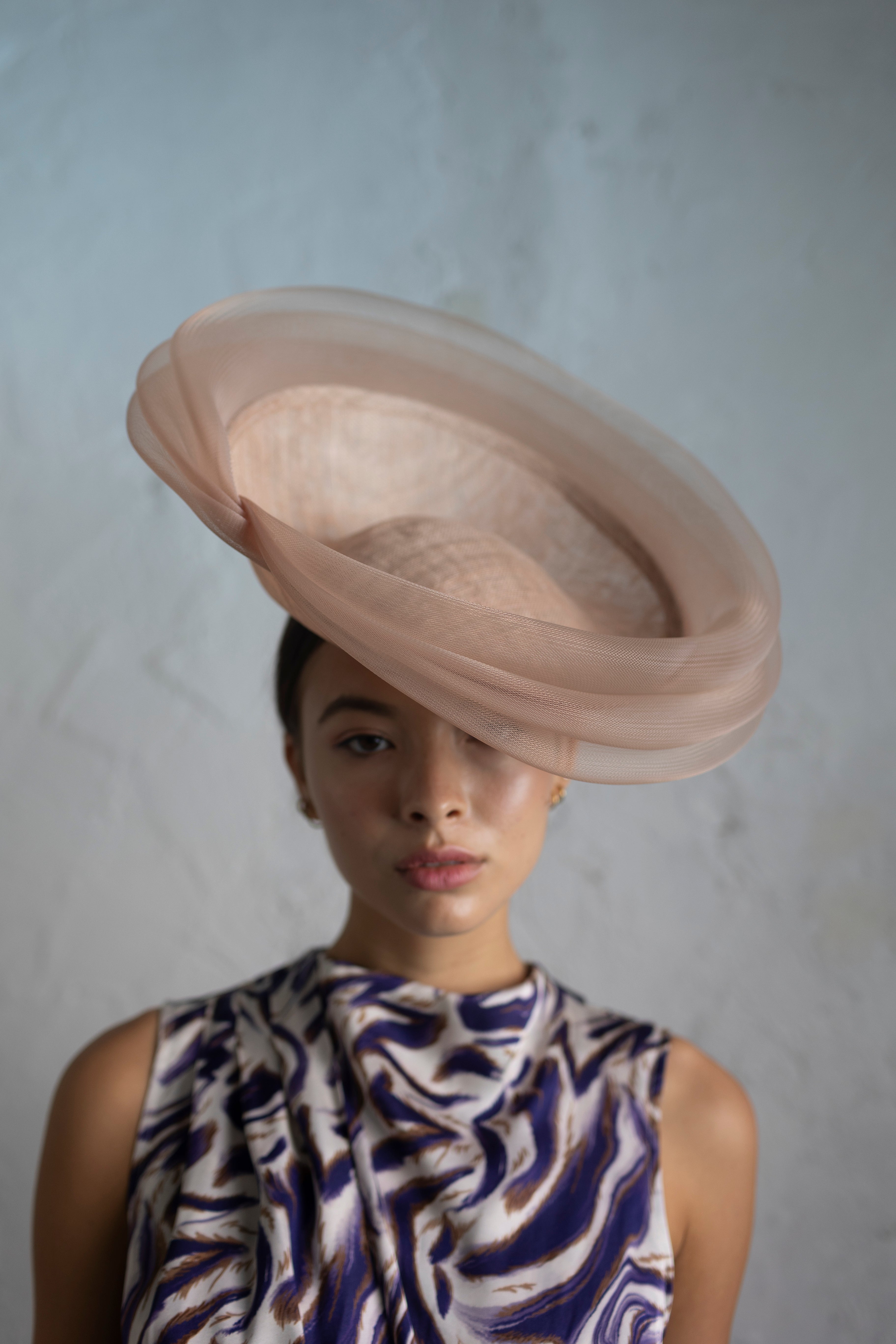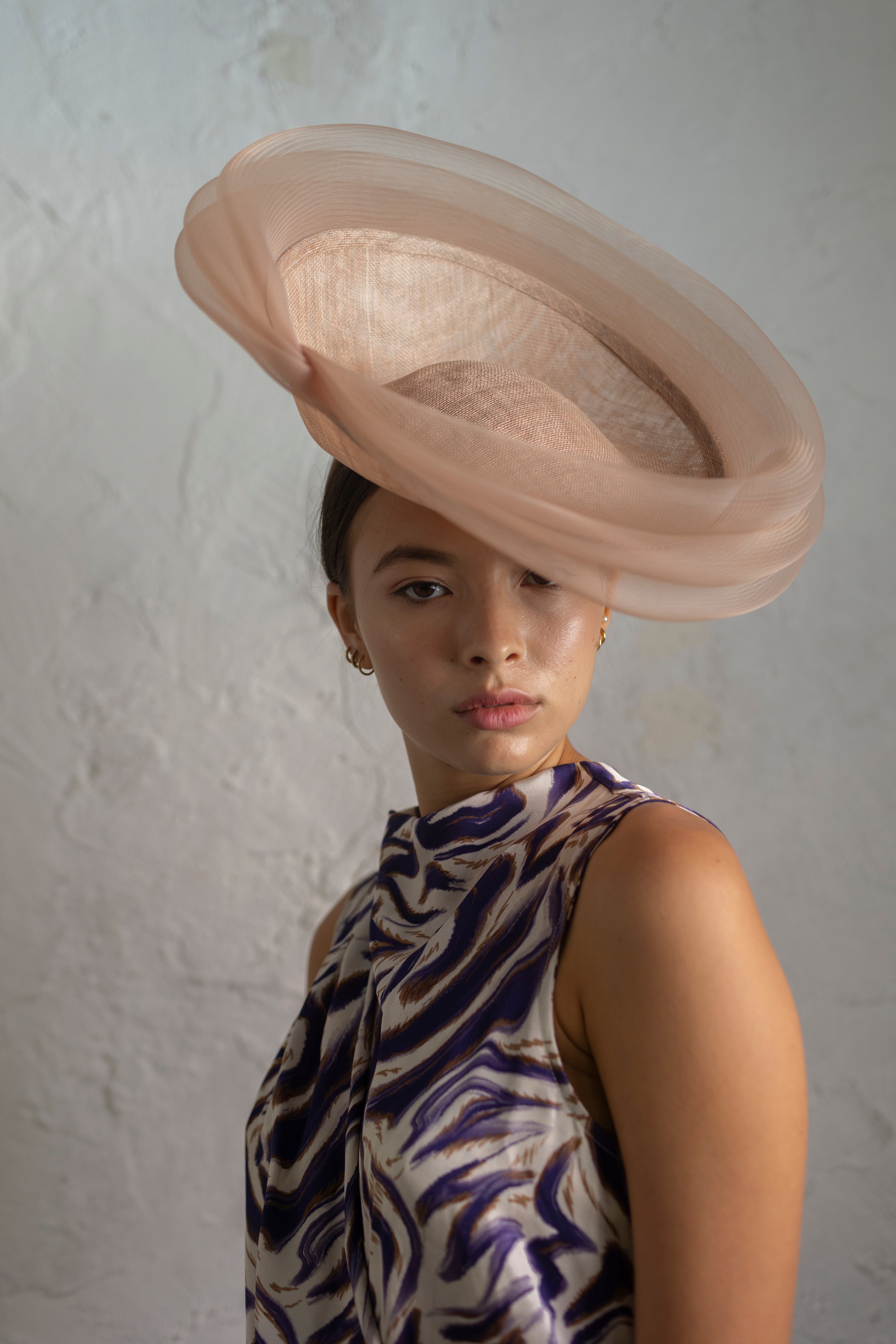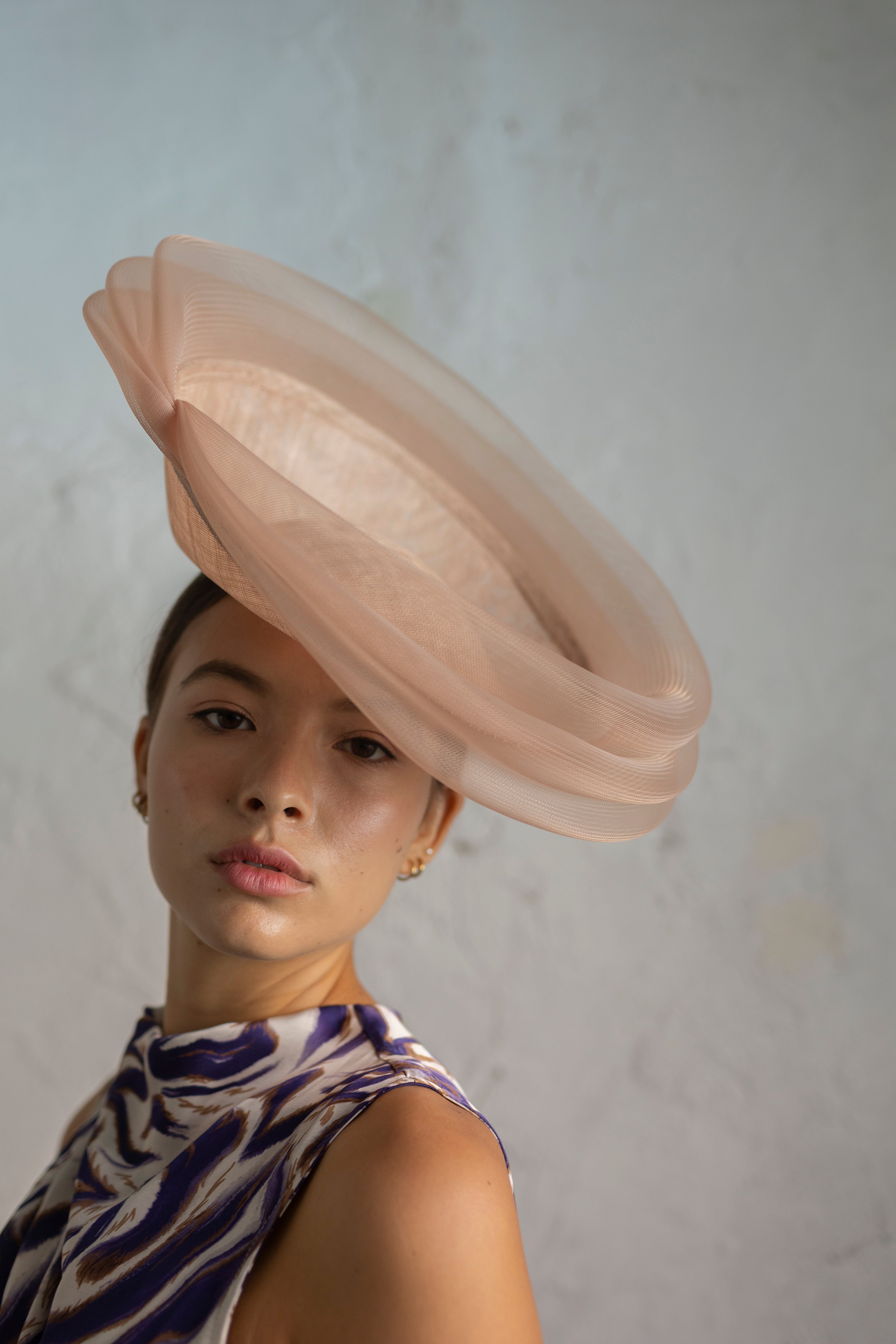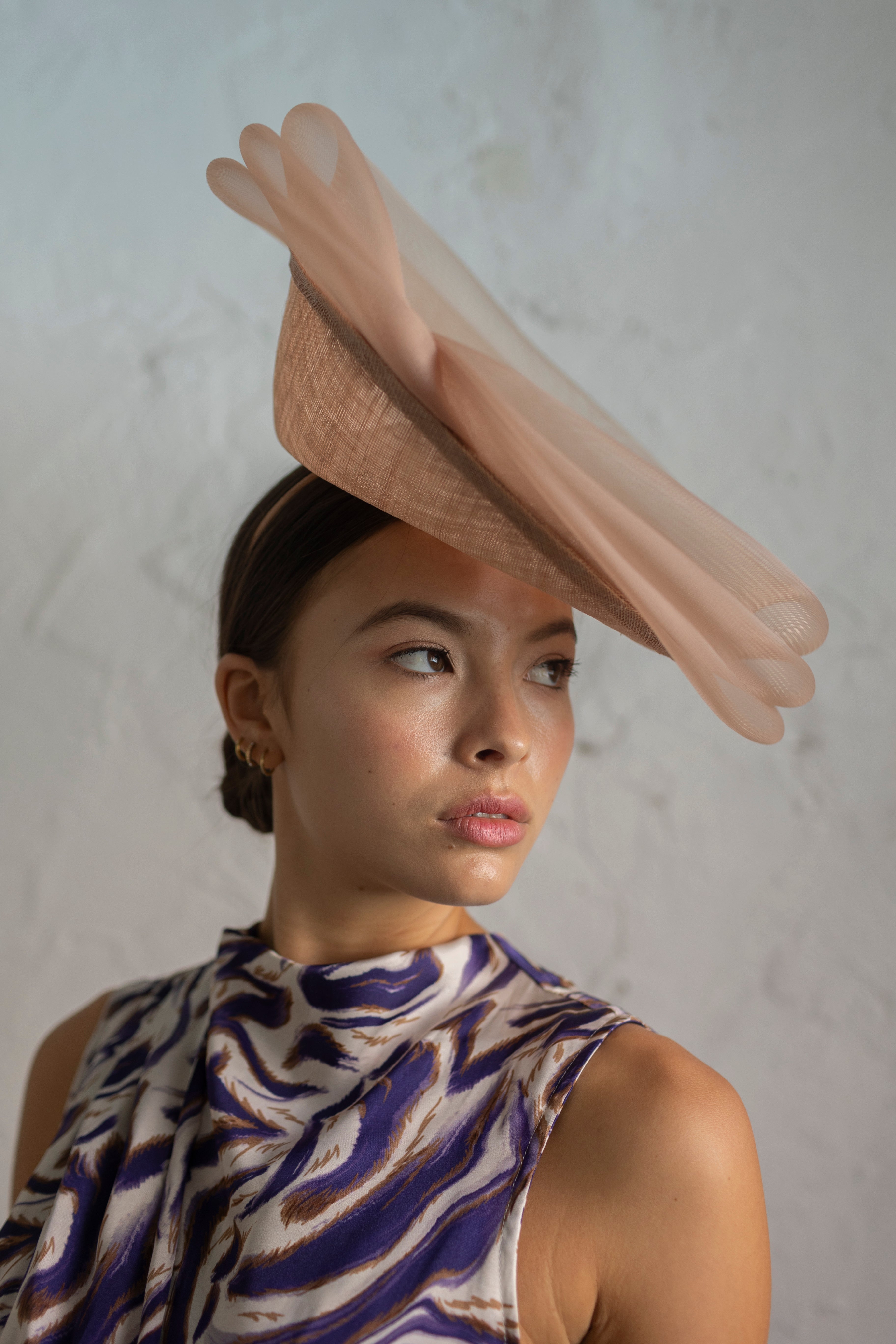 Dulcinea de sinamay rosa nude con triple ondeado de crin al tono