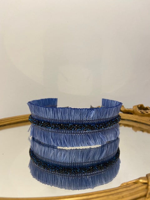 Diadema sia de rafia azul cobalto con pedreria central