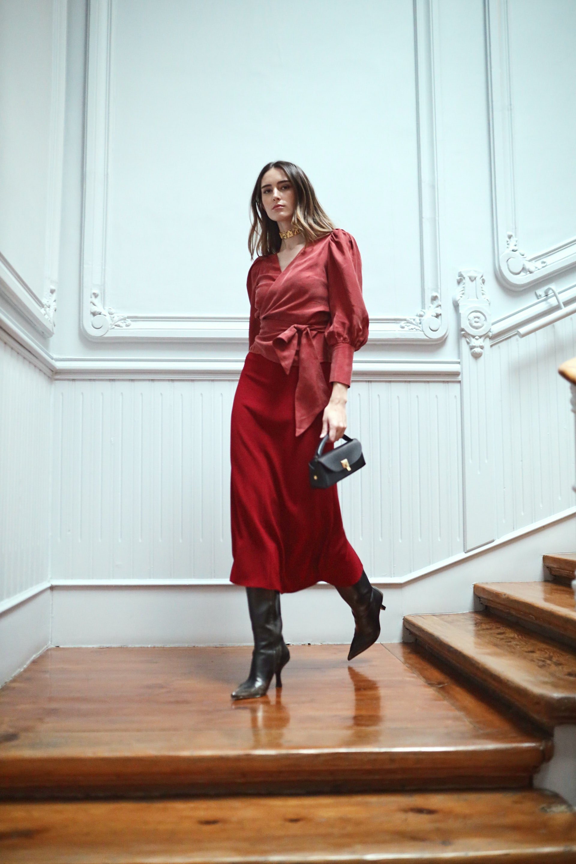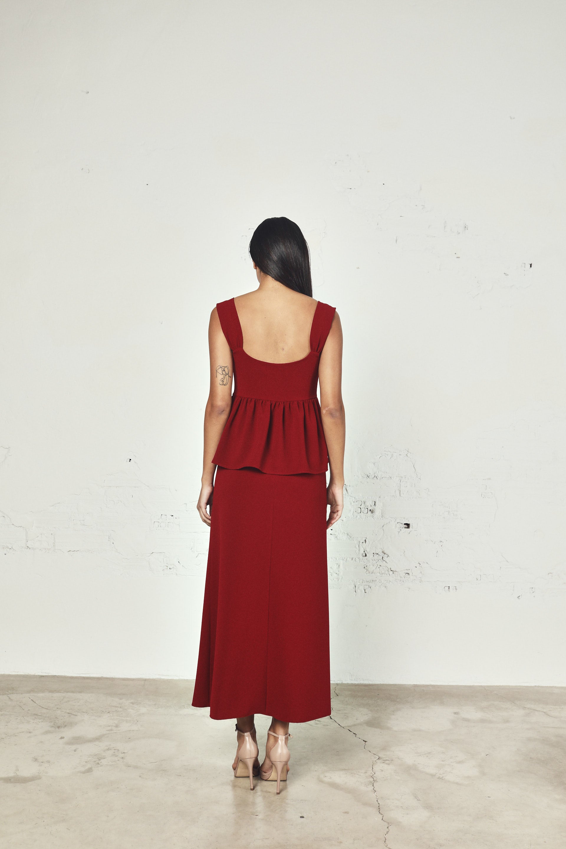 Falda midi con corte evasé.
