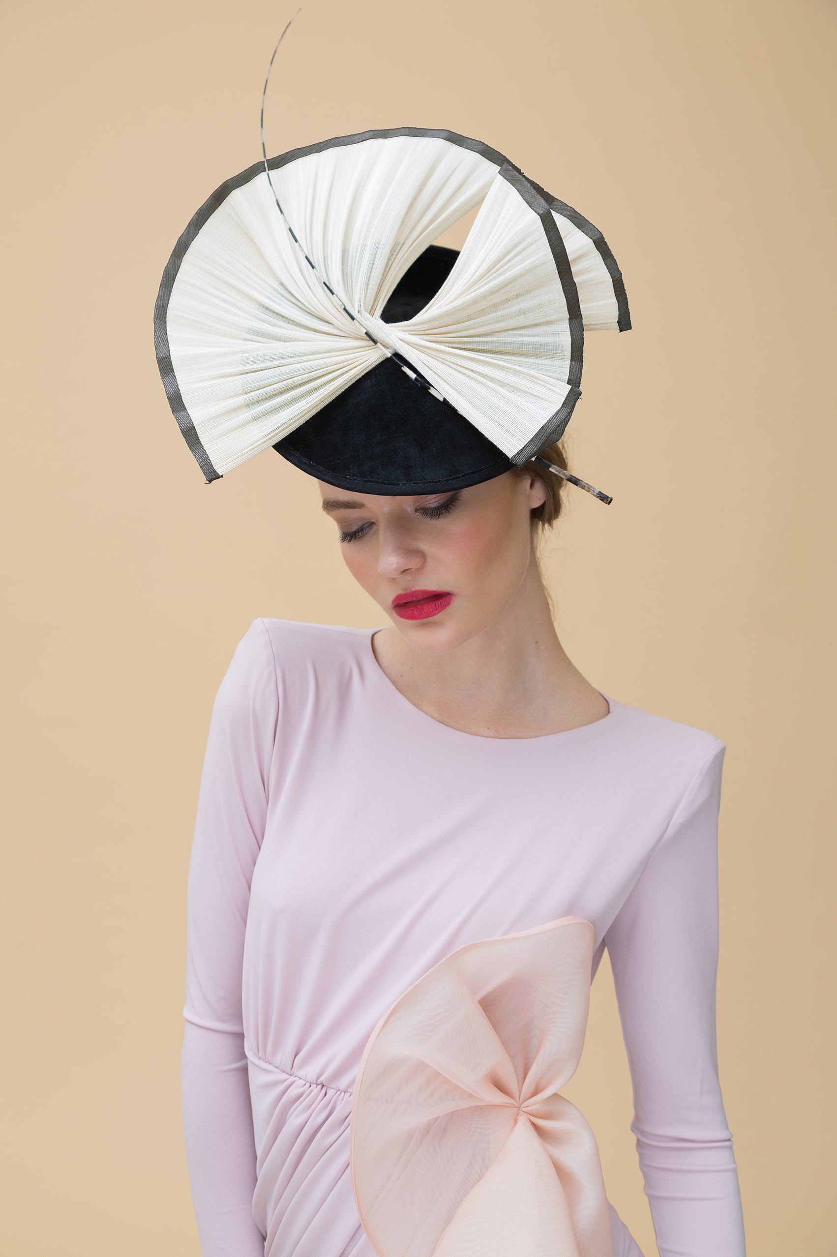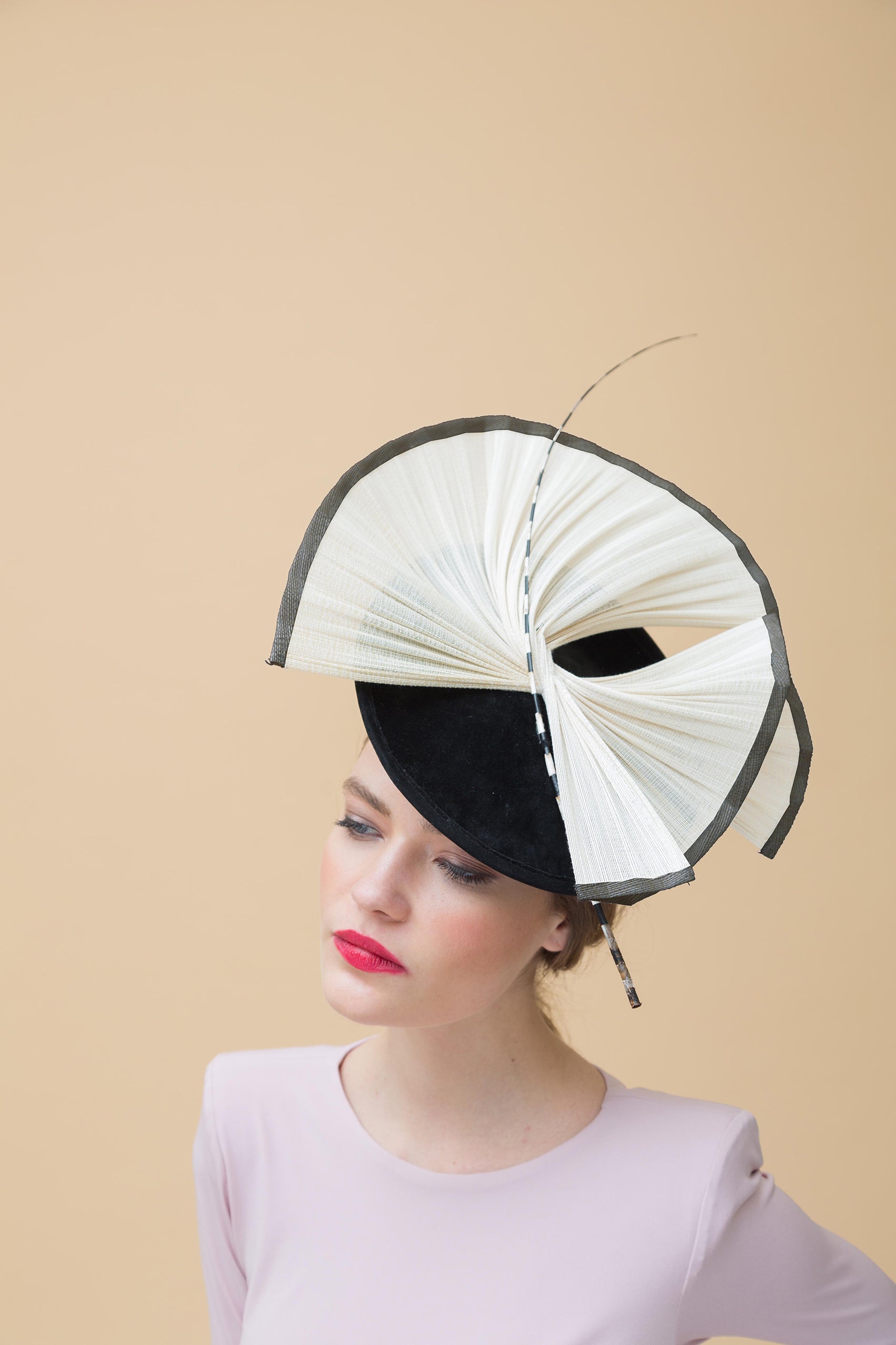 Dulcinea mediana forrada en terciopelo negro con abanico natural y raqui blanco y negro.