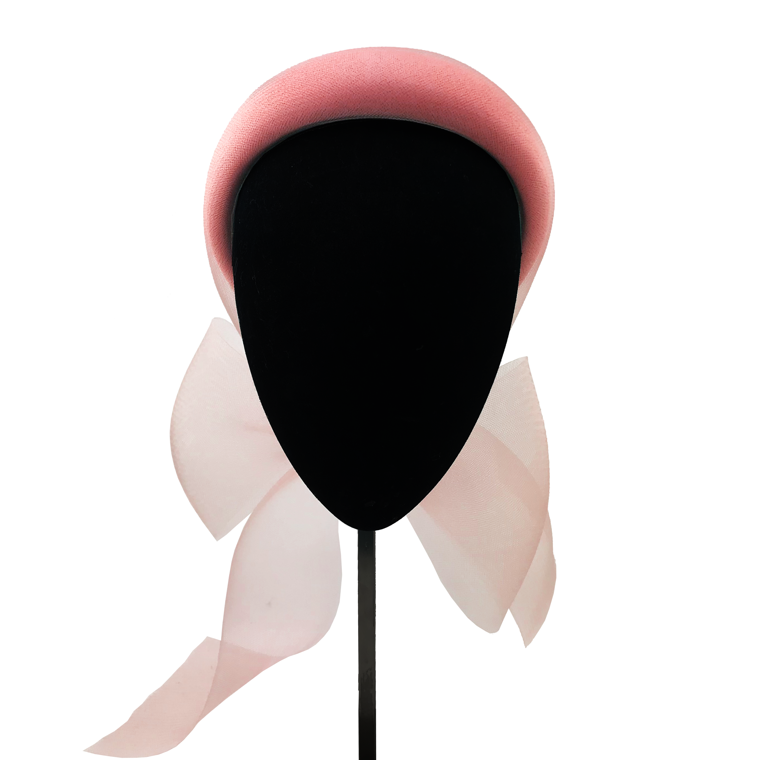 Diadema ancha forrada de crin coral con lazada trasera.