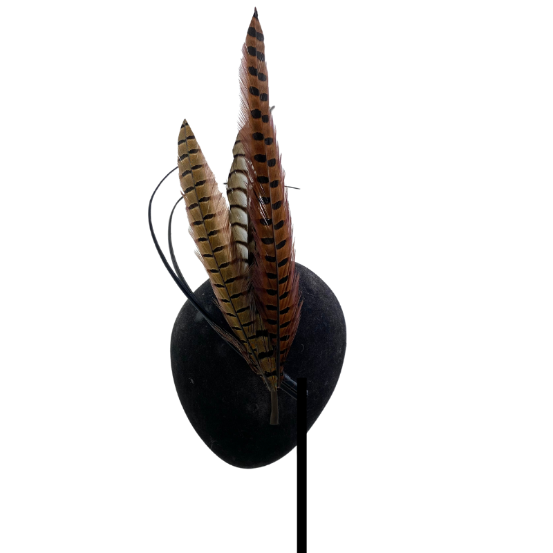 Estructura de 2 raquis curvados negros y plumas faisán en tonos naturales