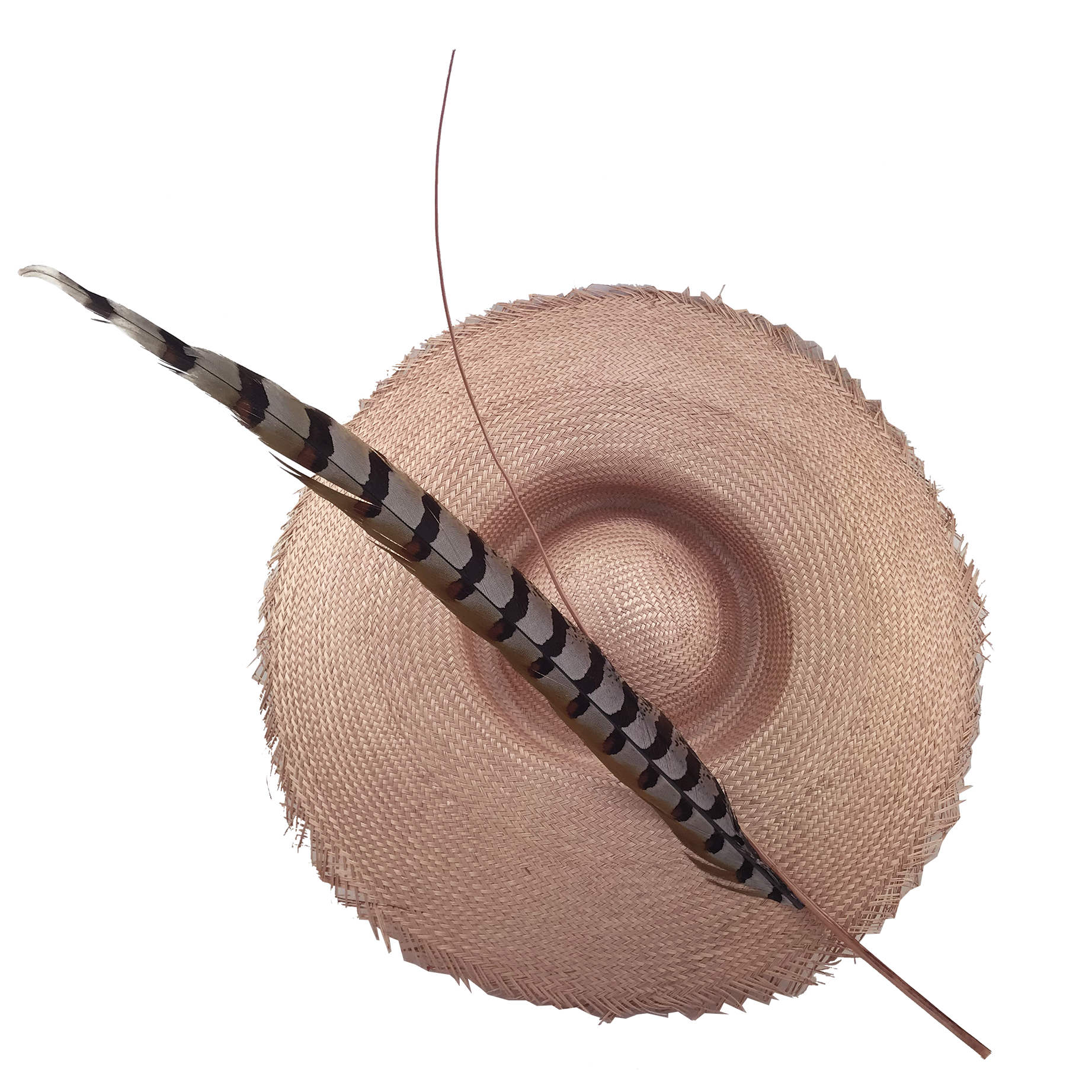 Plato new look de buntal deshilachado color nude, con pluma jaspeada y raqui al tono.